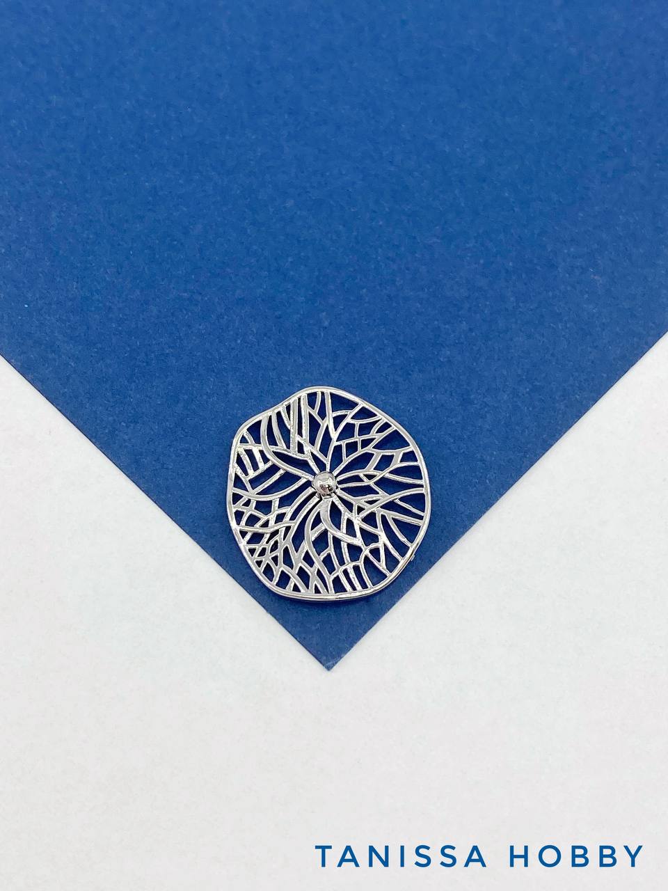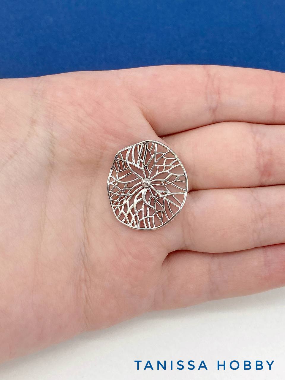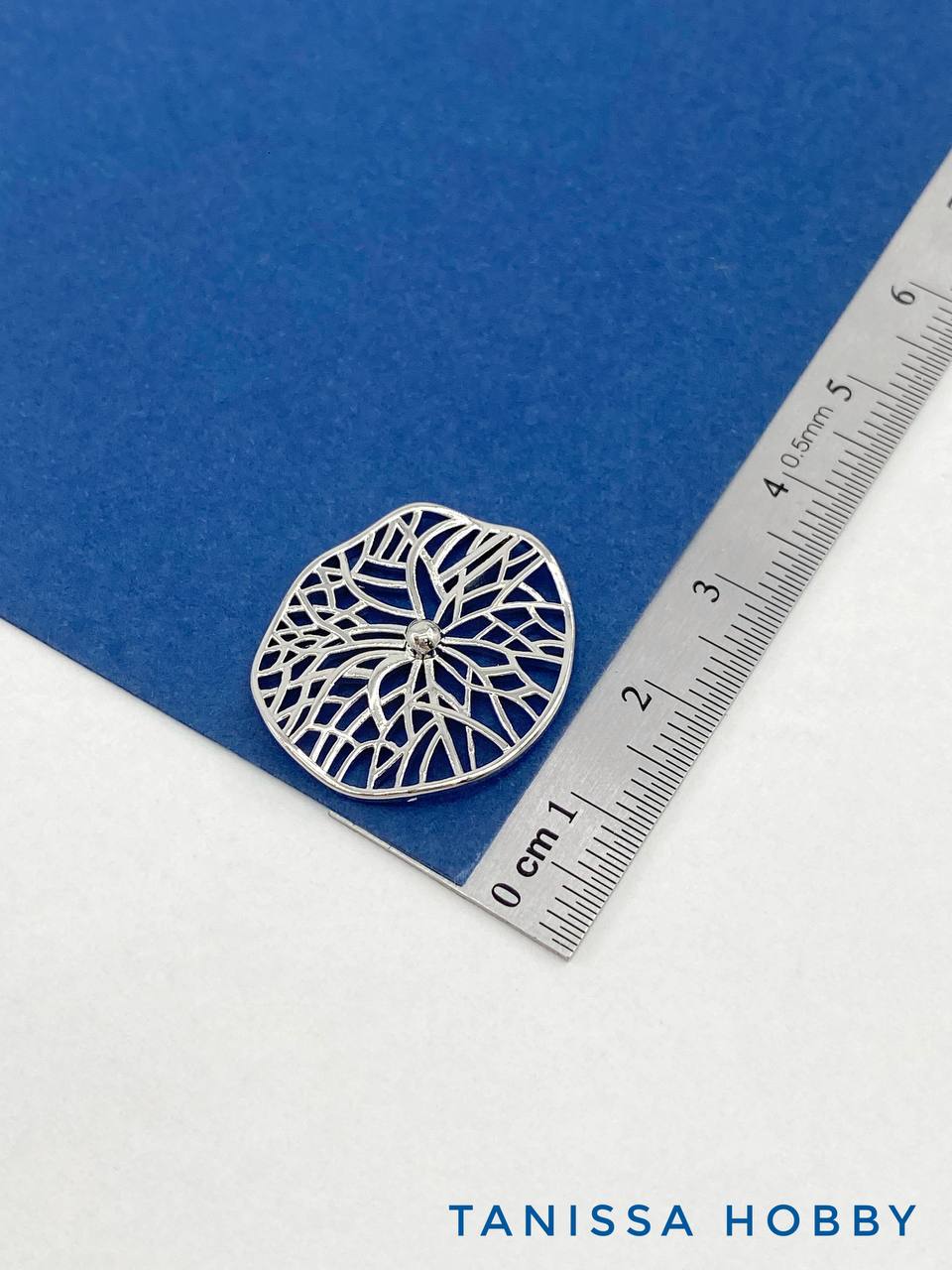 Коннектор ажурный круг мятый металл, 22мм, родий, Д427
