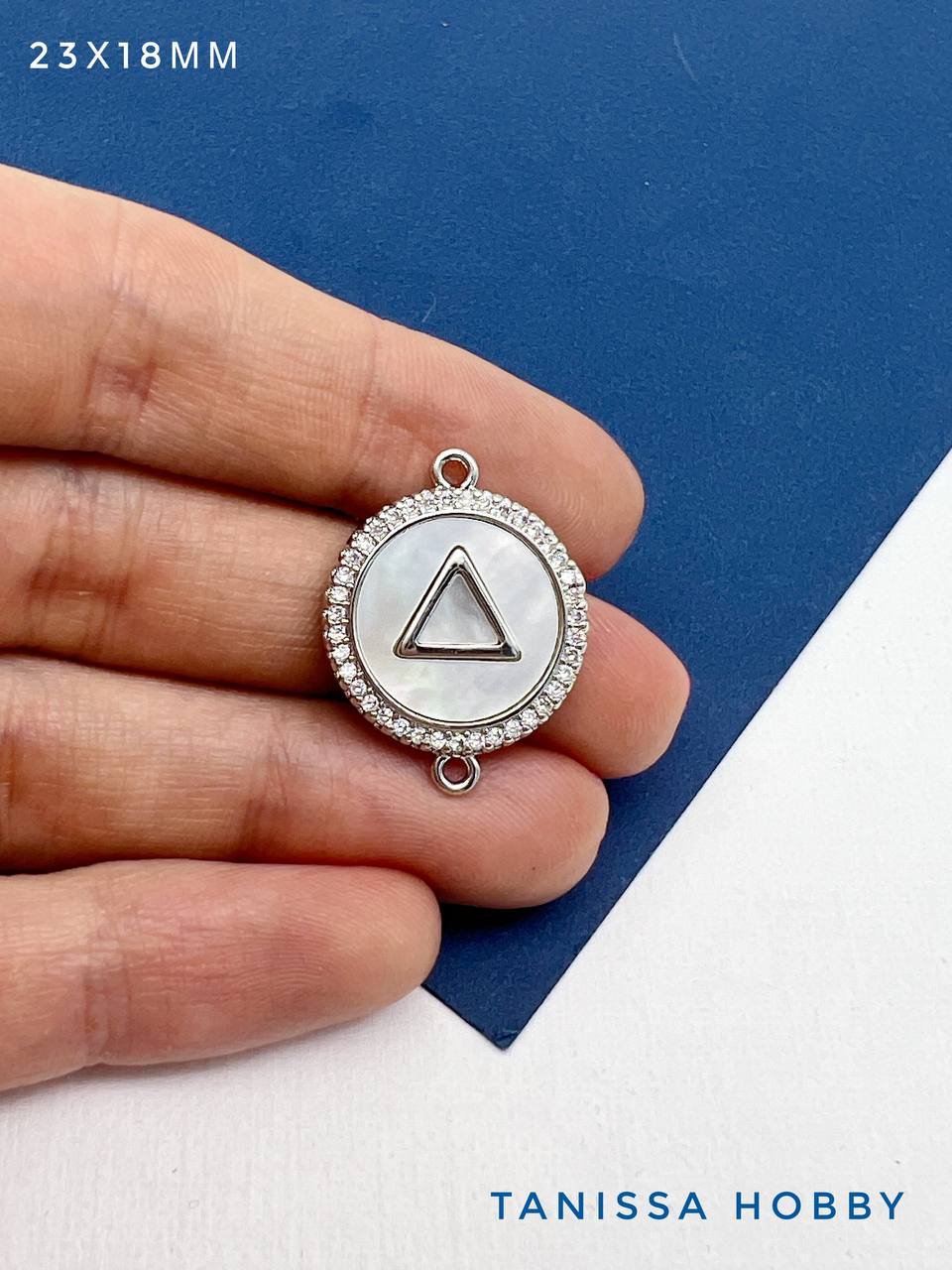 Коннектор круг перламутр, 23х18мм, родий, С704