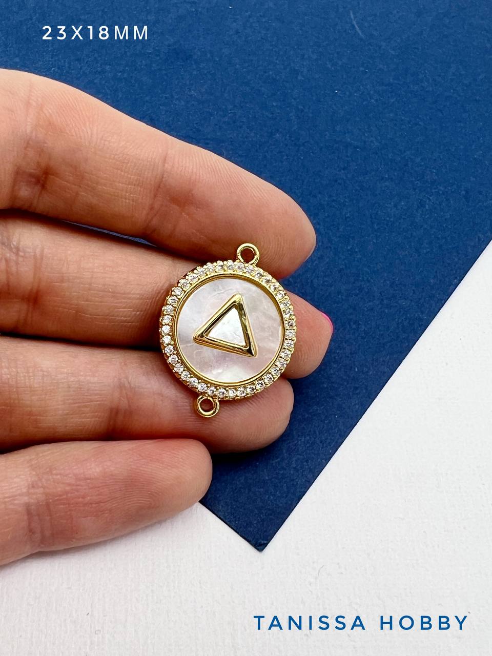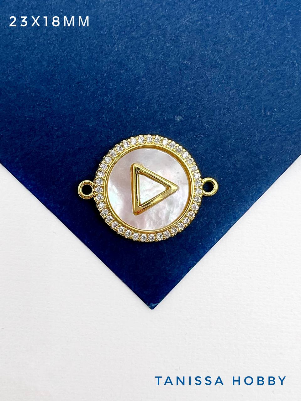 -Коннектор круг перламутр, 23х18мм, позолота, С710