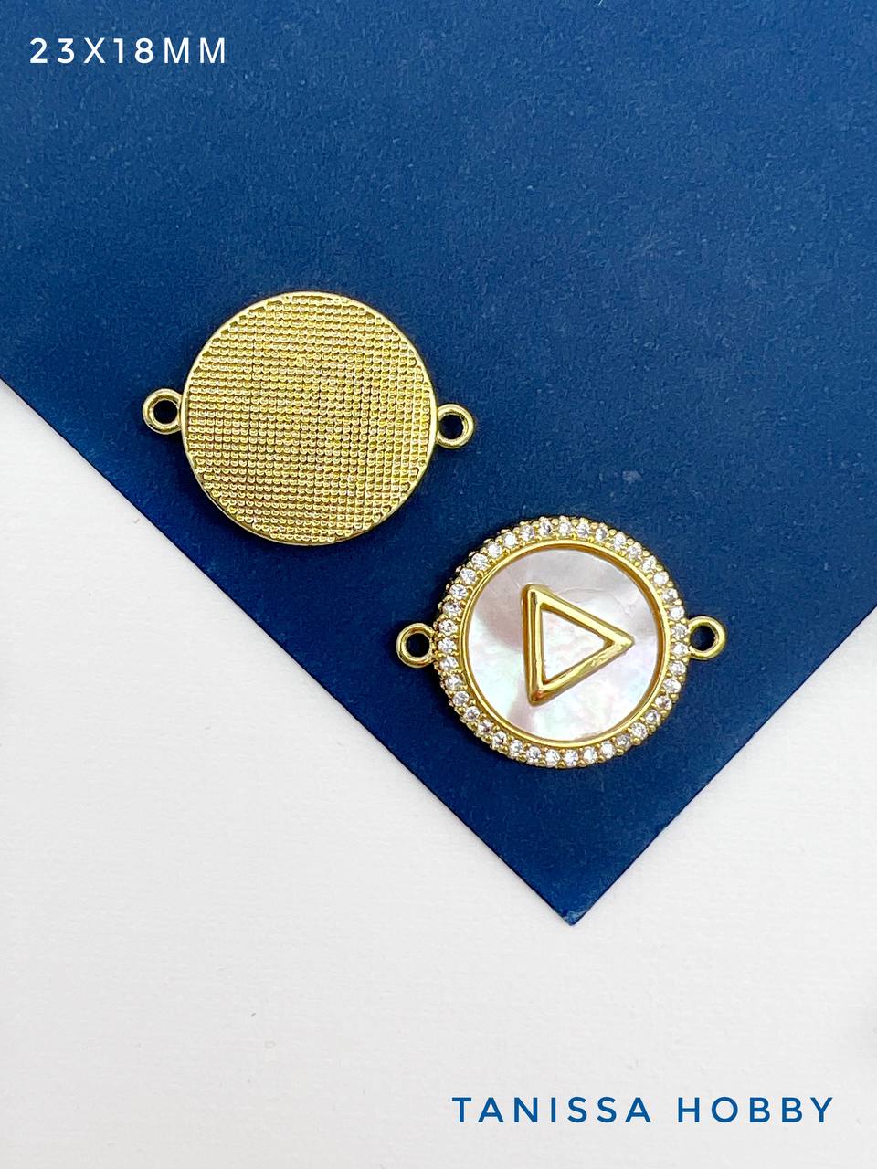 Коннектор круг перламутр, 23х18мм, позолота, С710