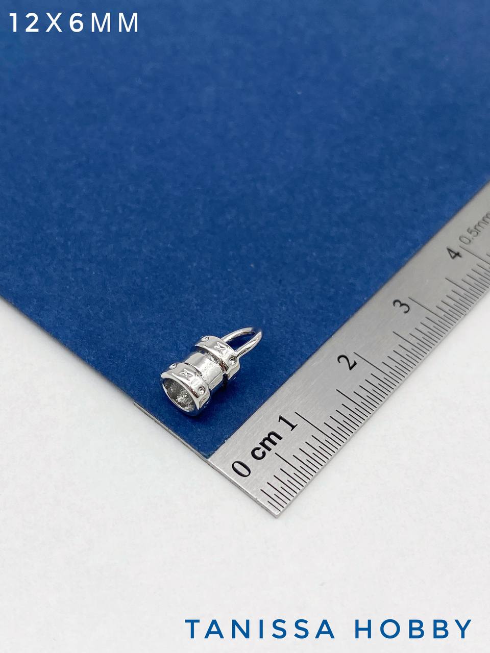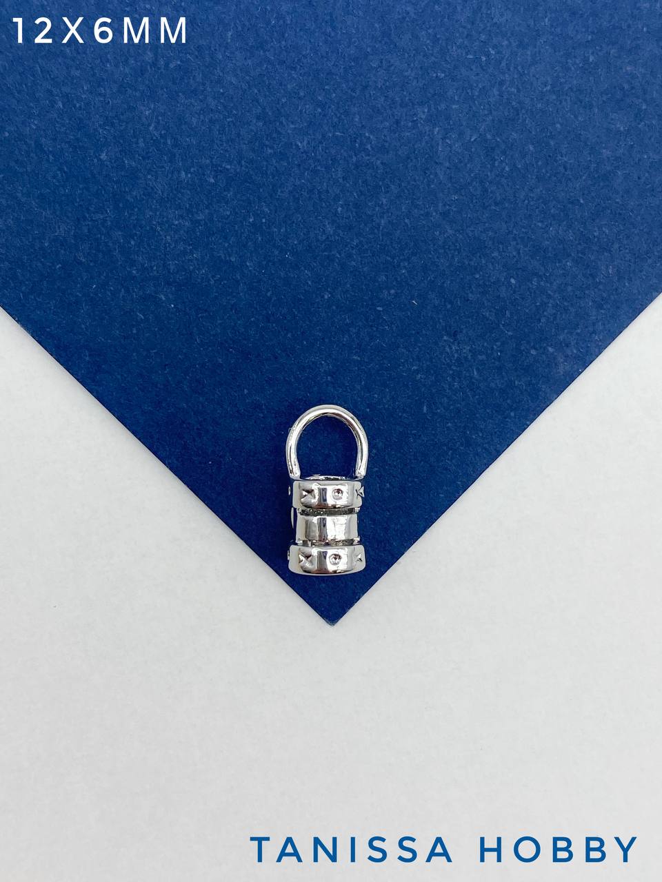 Концевик зажимной, 12х6мм, 3мм для цепочки, шнура, жгута, родий, В002