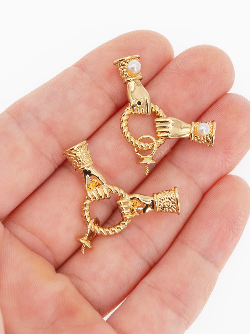 Концевик коннектор руки витой круг с бейлом для вклейки, позолота, А232