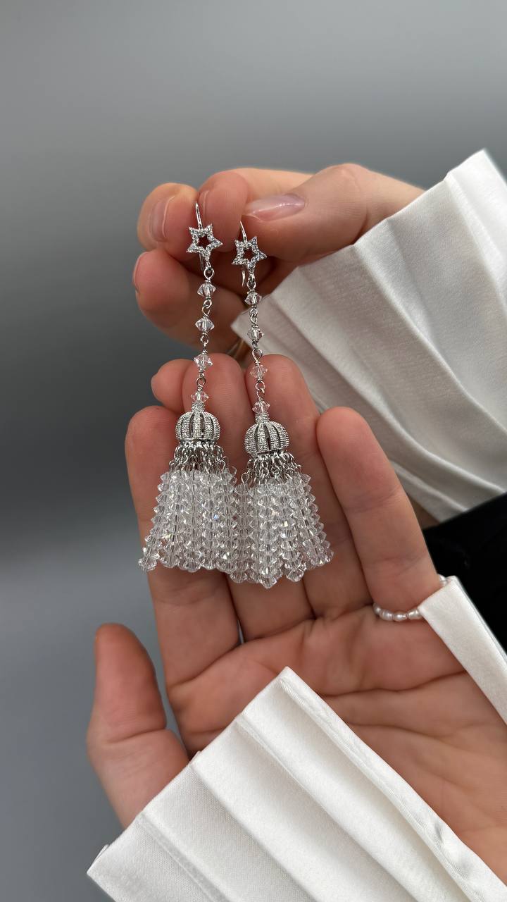 • Набор к МК Серьги кисточки, прозрачный, родий, МК047