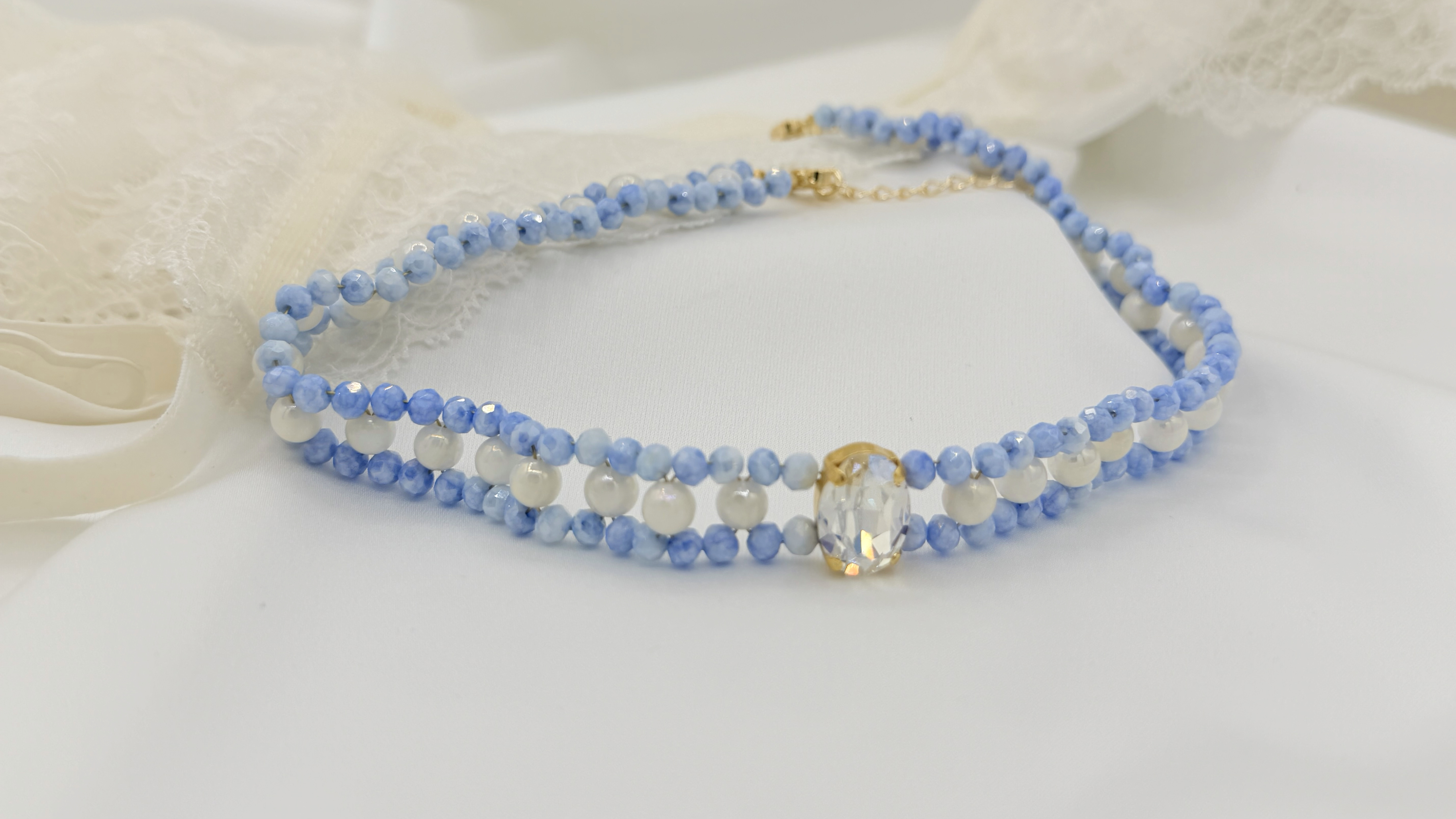 Набор к МК Плетеное колье "Грезы о весне", светлый синий, МК098С