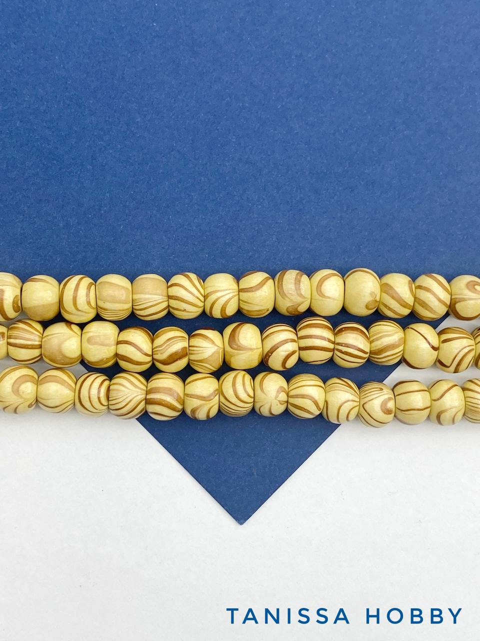 Деревянные бусины в полоску, круглые, 8мм, нить, П118