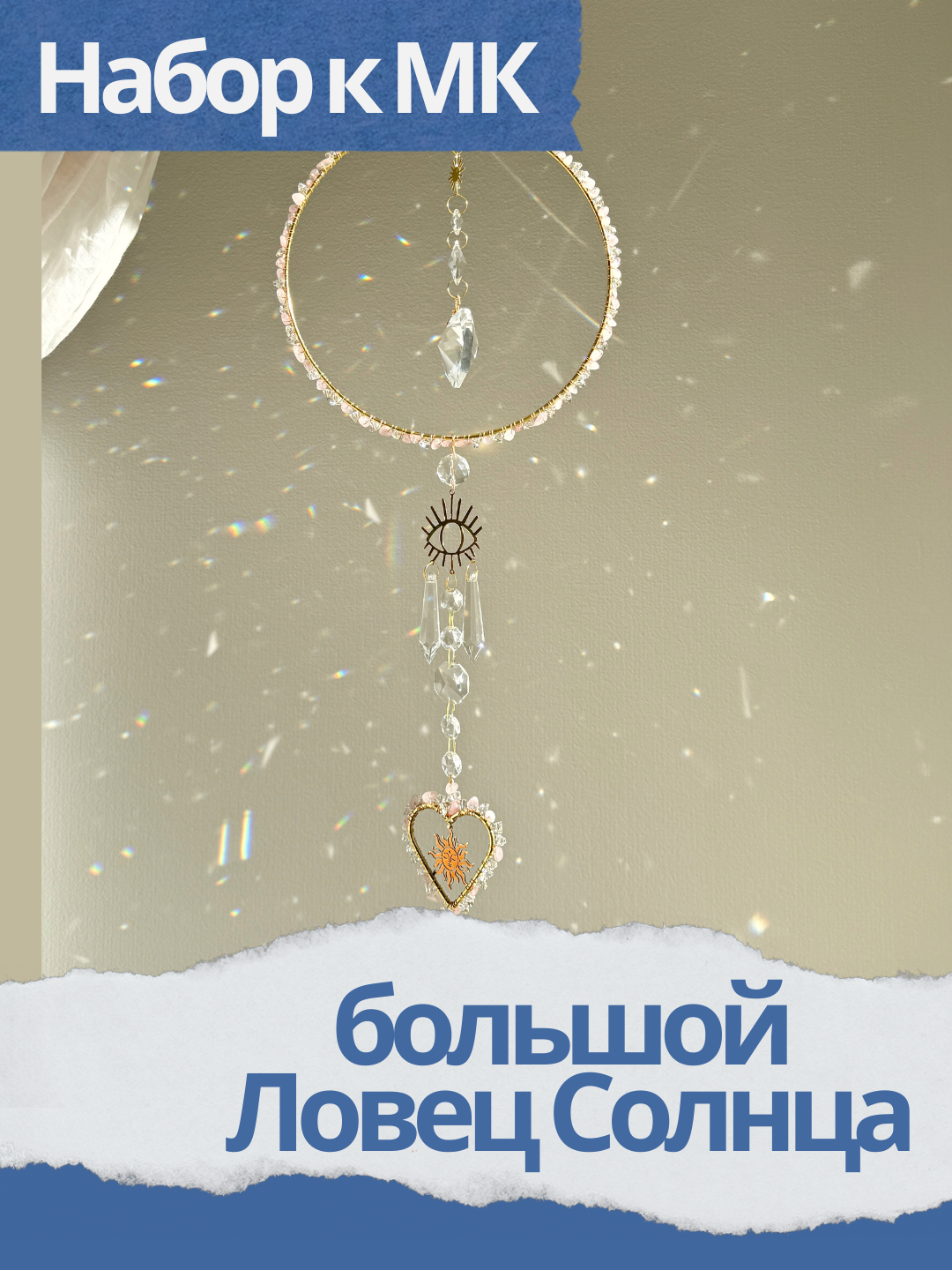 Набор к МК большой Ловец Солнца сердце и розовый кварц, позолота, МК026
