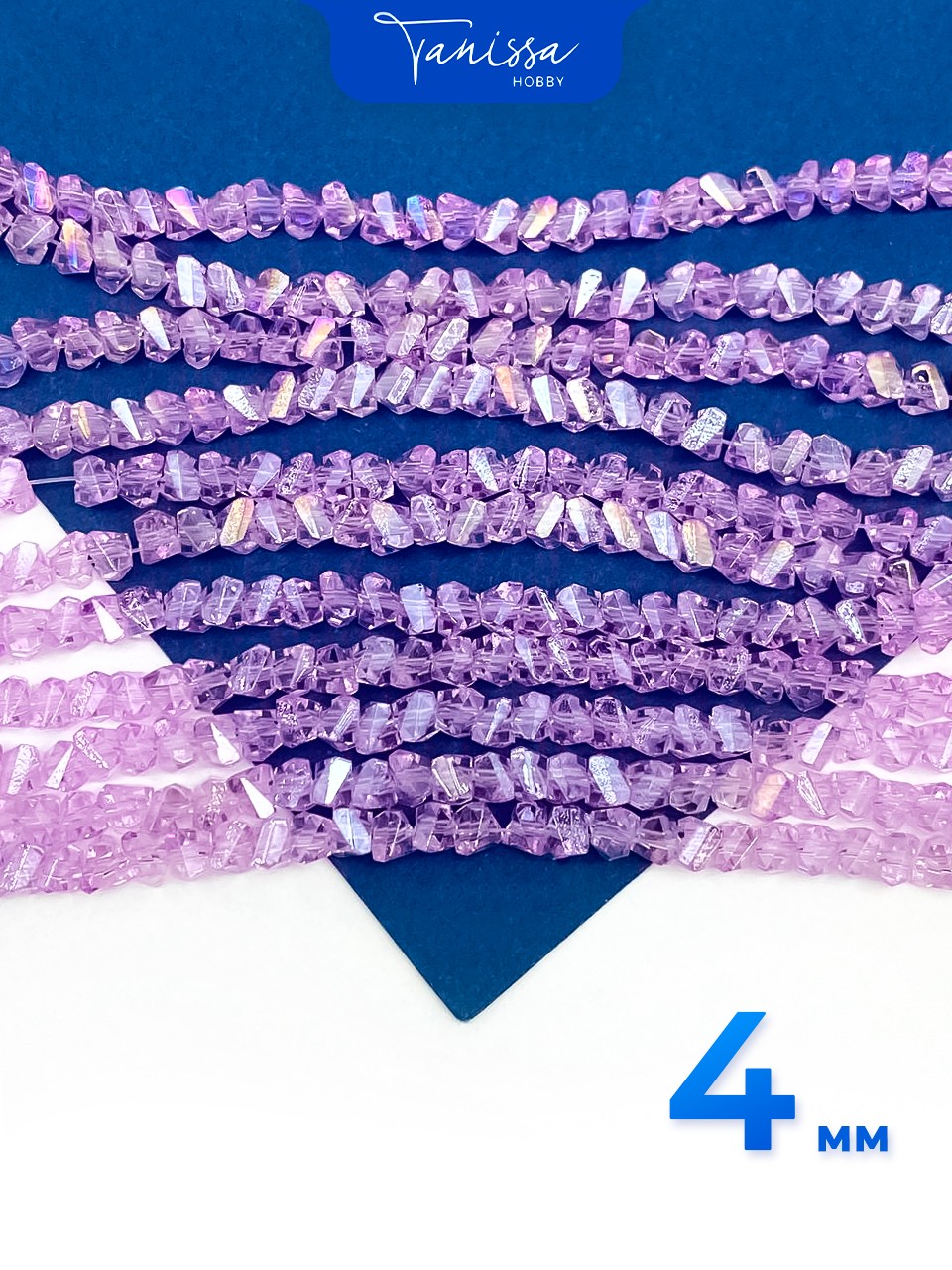 Хрусталь крошка треугольник фиолетовый АВ, 4мм, нить, Х238