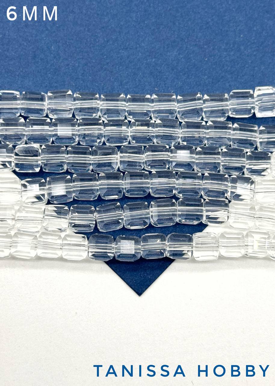 Хрусталь Куб, квадратный, прозрачный, 6мм, 1/2 нити, Х361