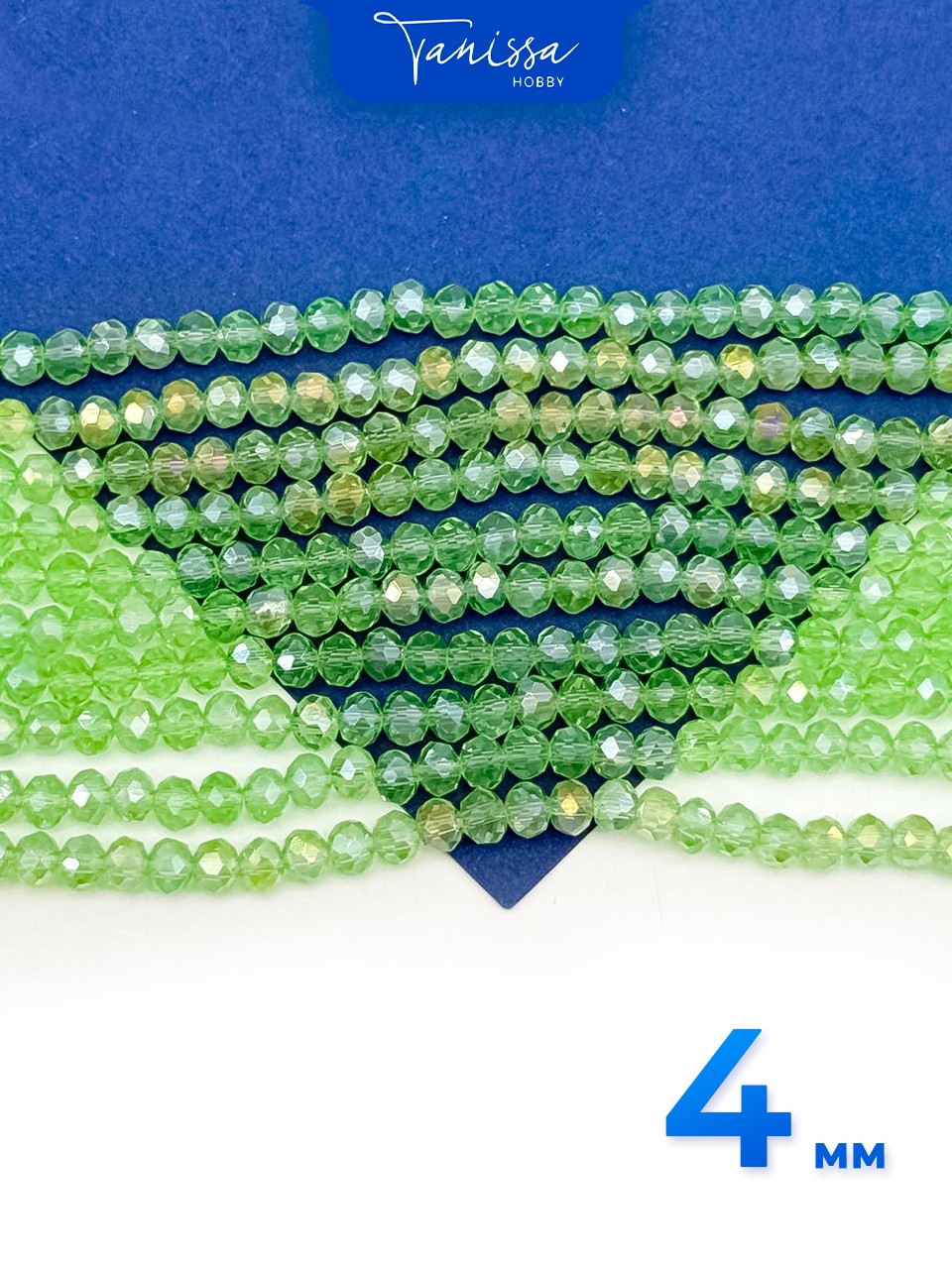 Хрусталь Рондели 4мм, светло зеленый АВ, нить, Х046