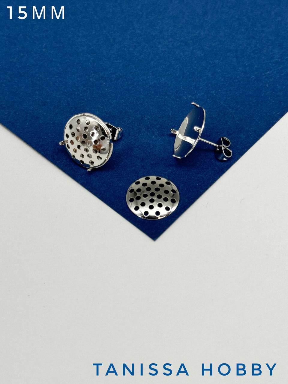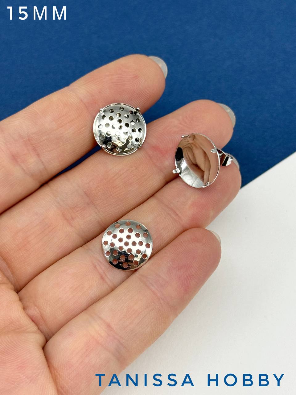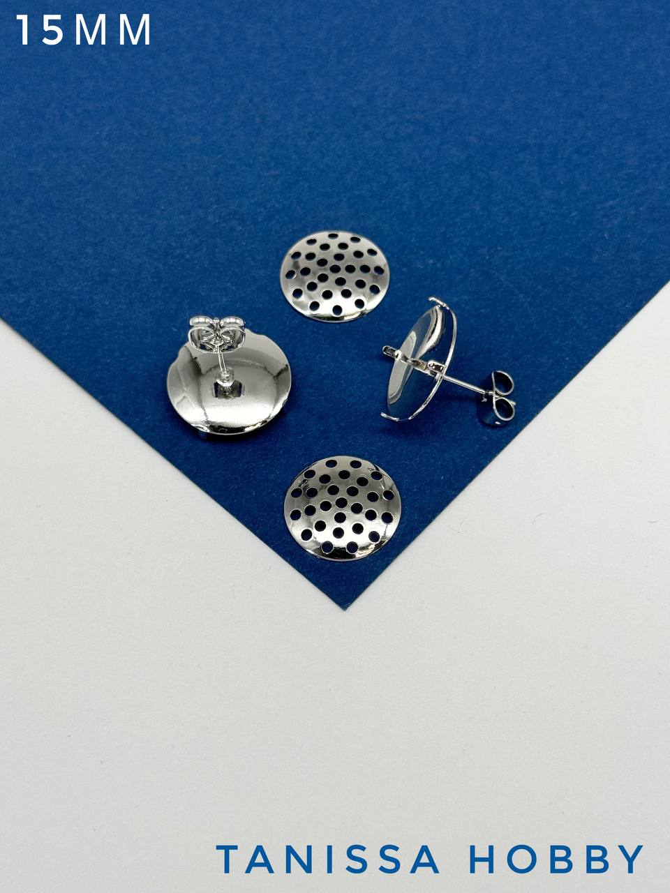 Швензы пусеты, основы для плетения "дуршлаг", родий, Е616