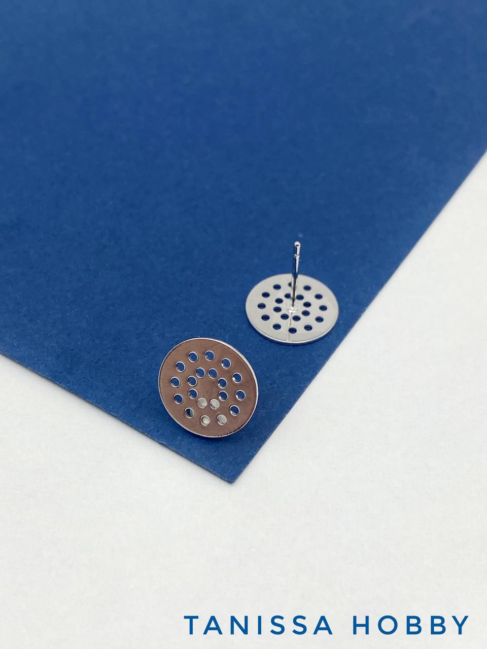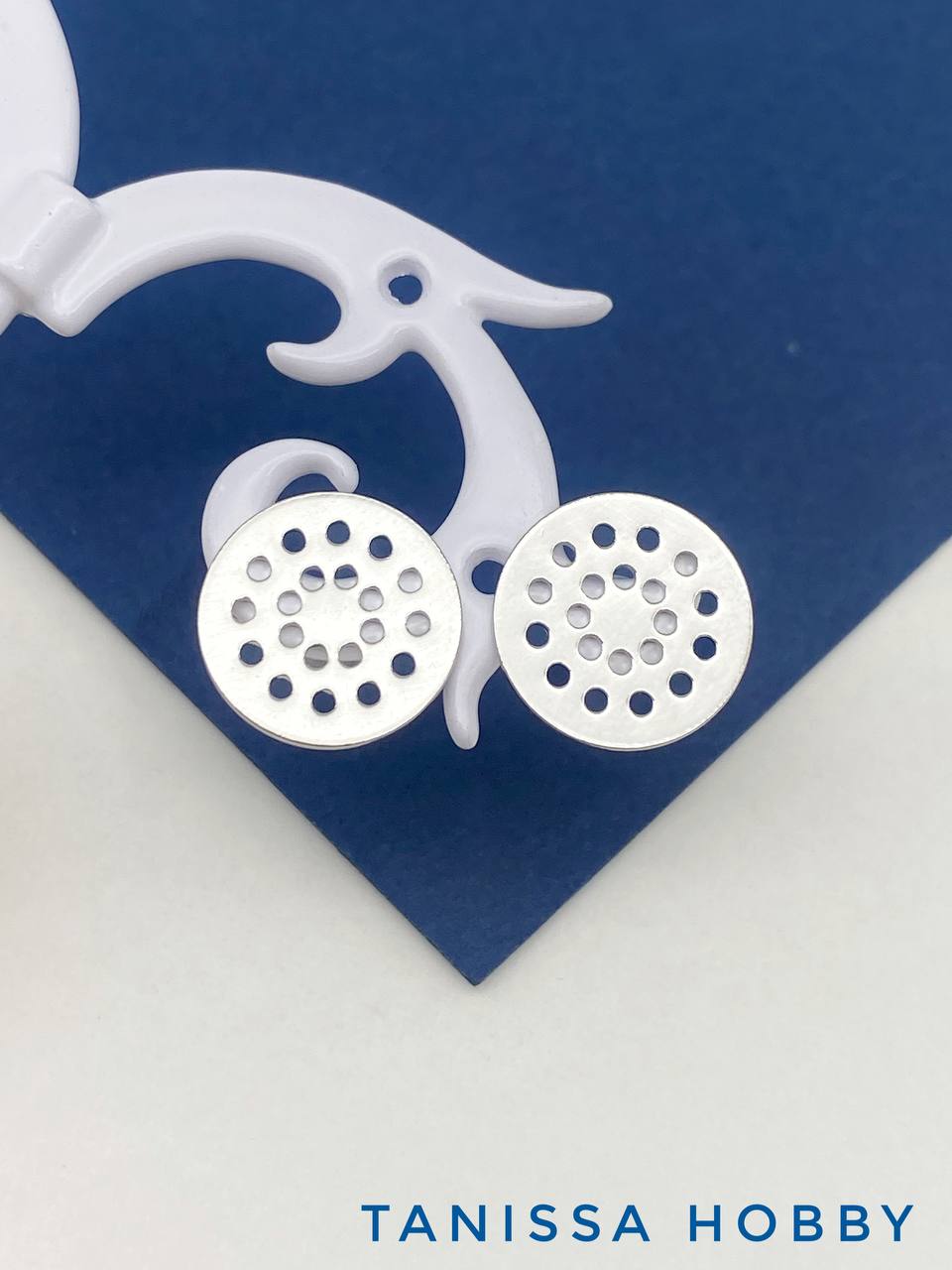 -Швензы пусеты 12мм с отверстиями, основы для плетения "дуршлаг", родий, Е816