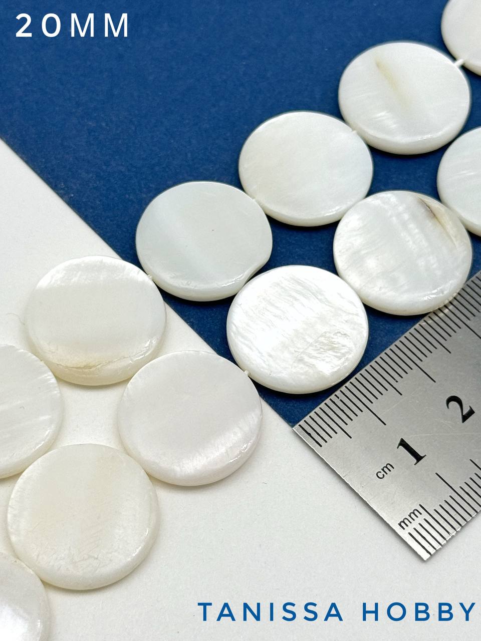 Перламутр бусины монетка, таблетка, 20мм, 1/2 нити, ПМ095