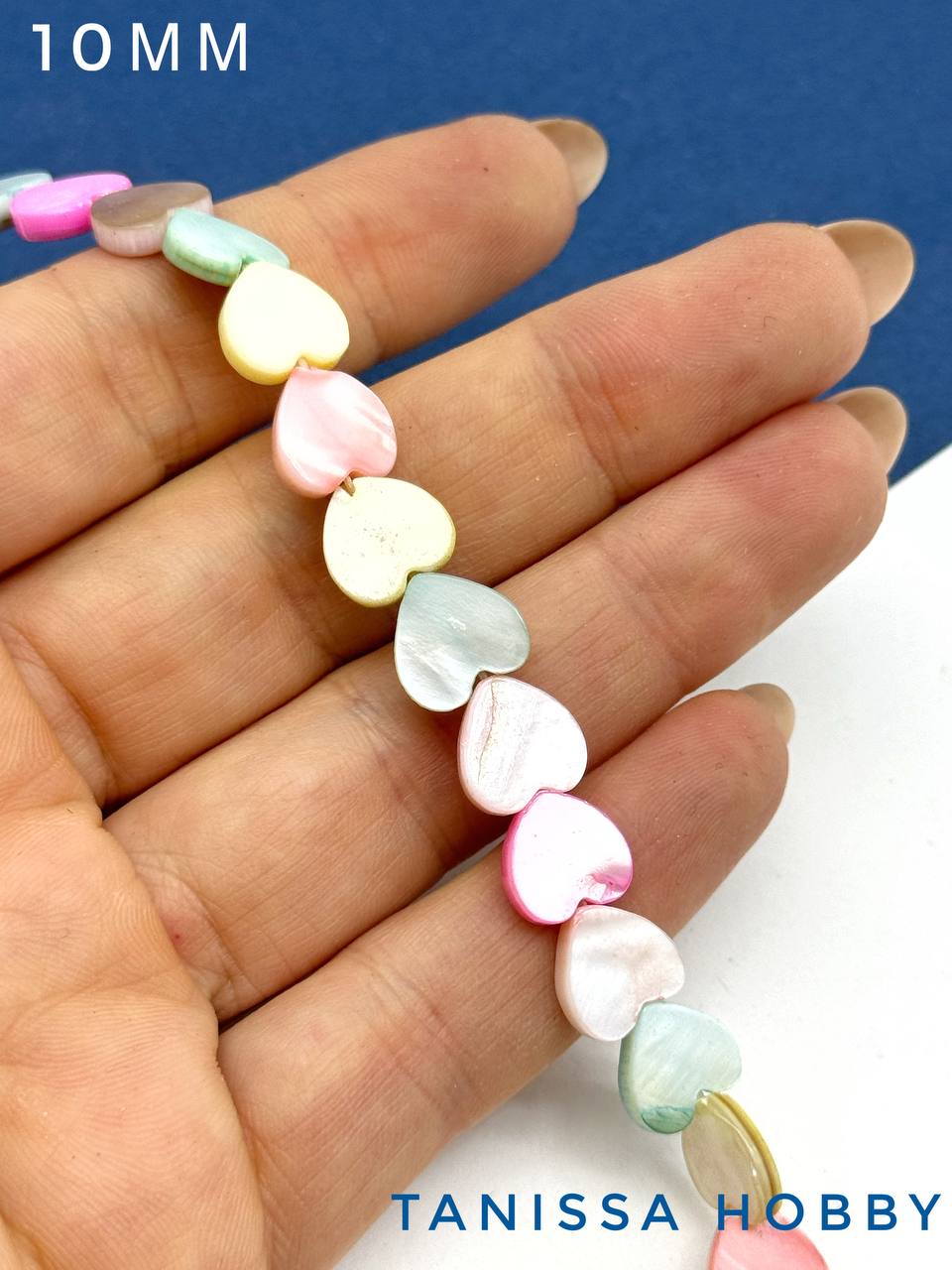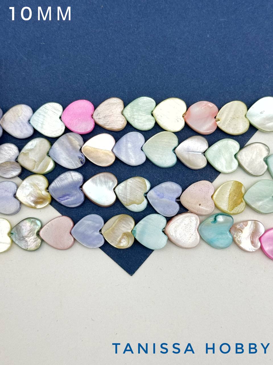 Перламутр бусины сердце, цветной микс, 10мм, 1/2 нити, ПМ013
