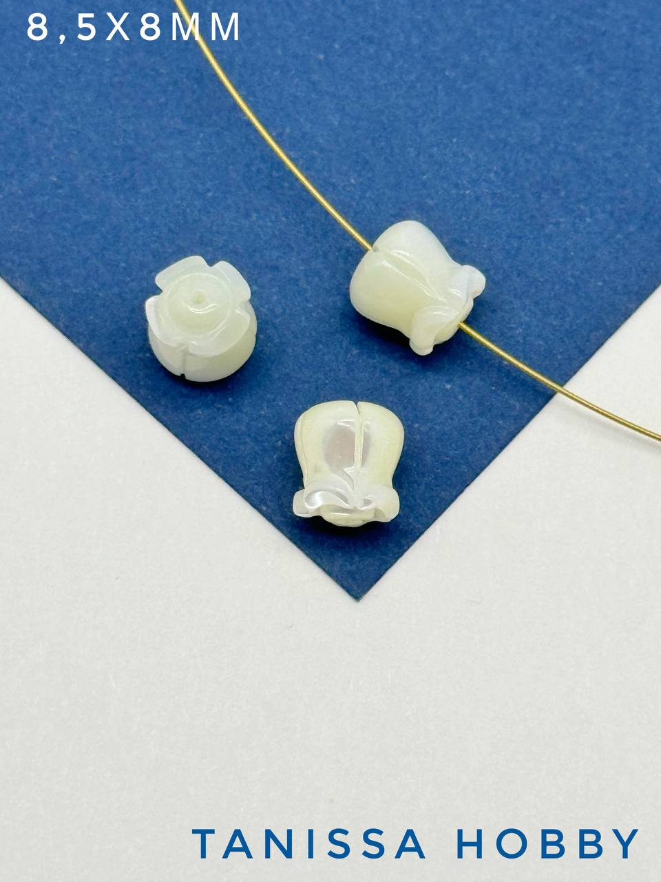 Бусина цветок, бутон, перламутр, 8мм, ПМ112