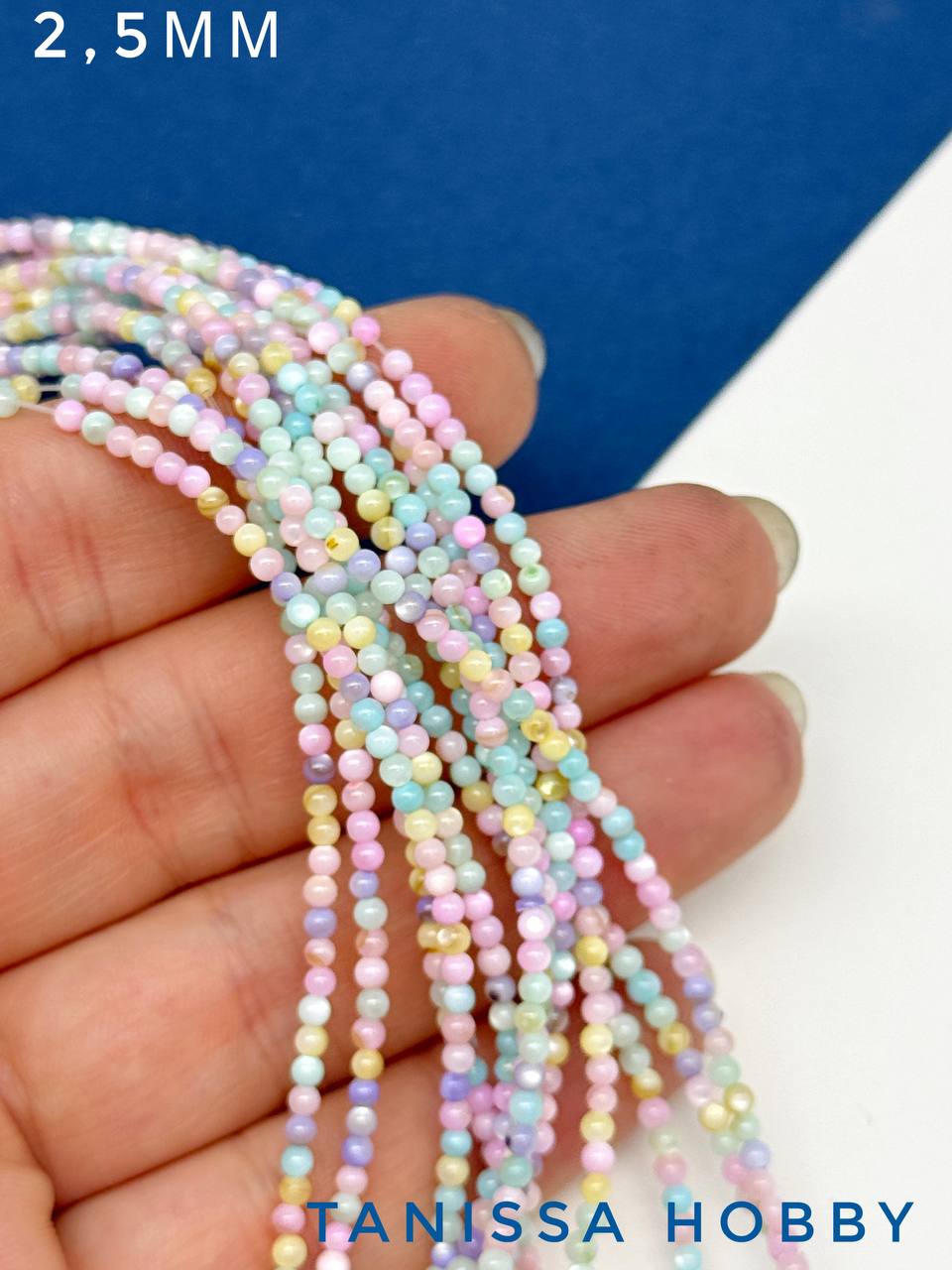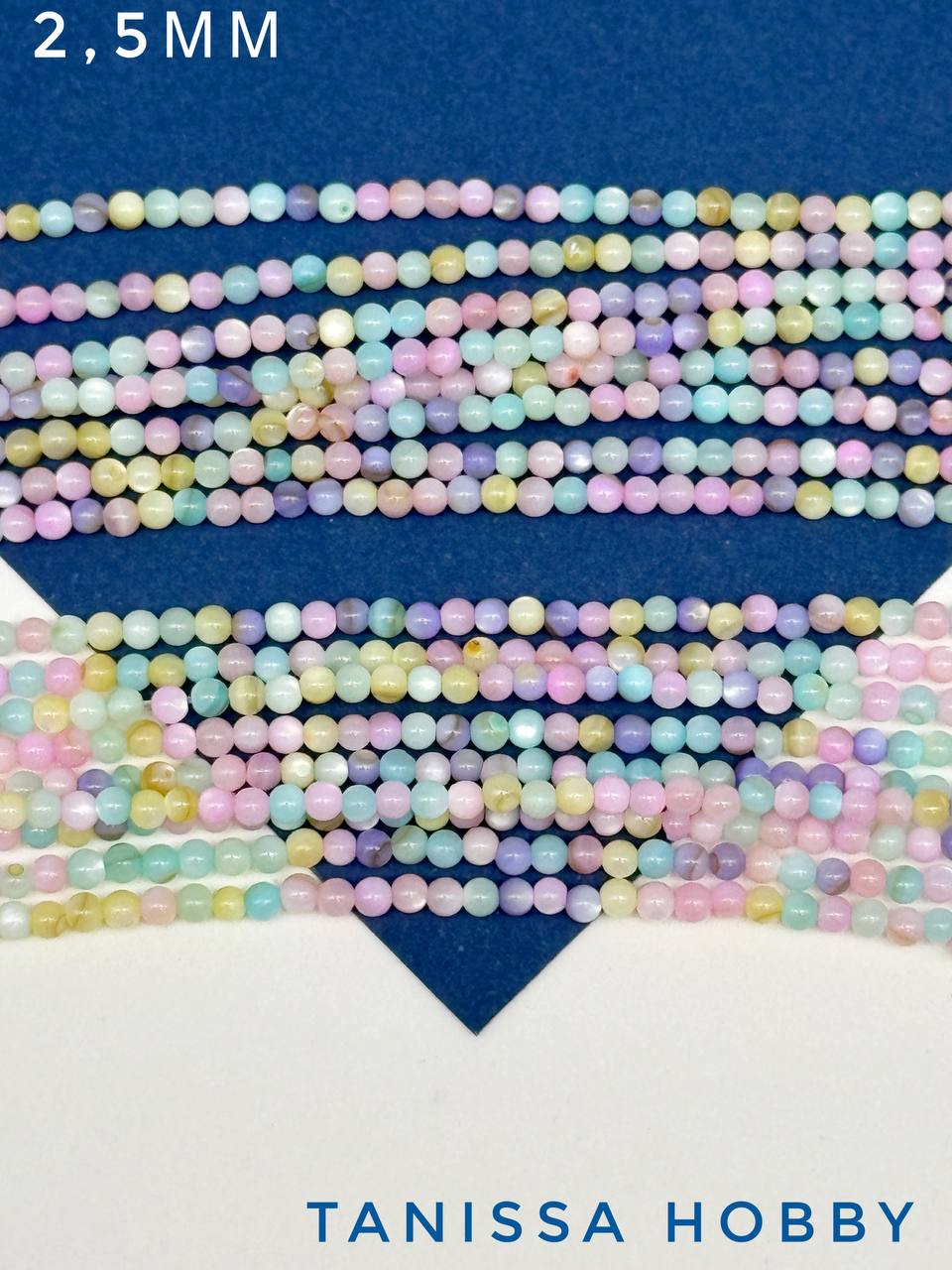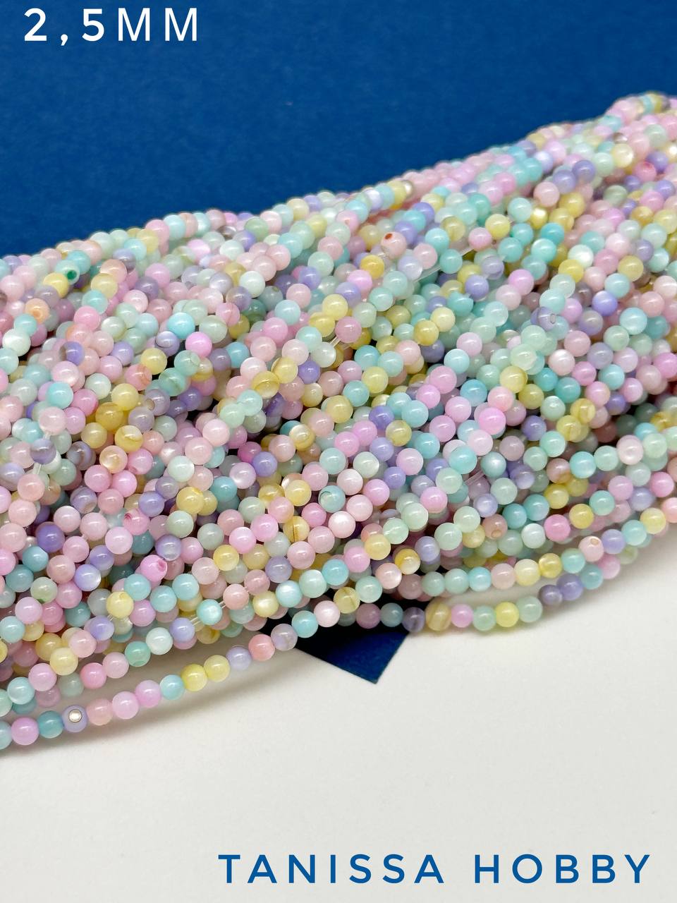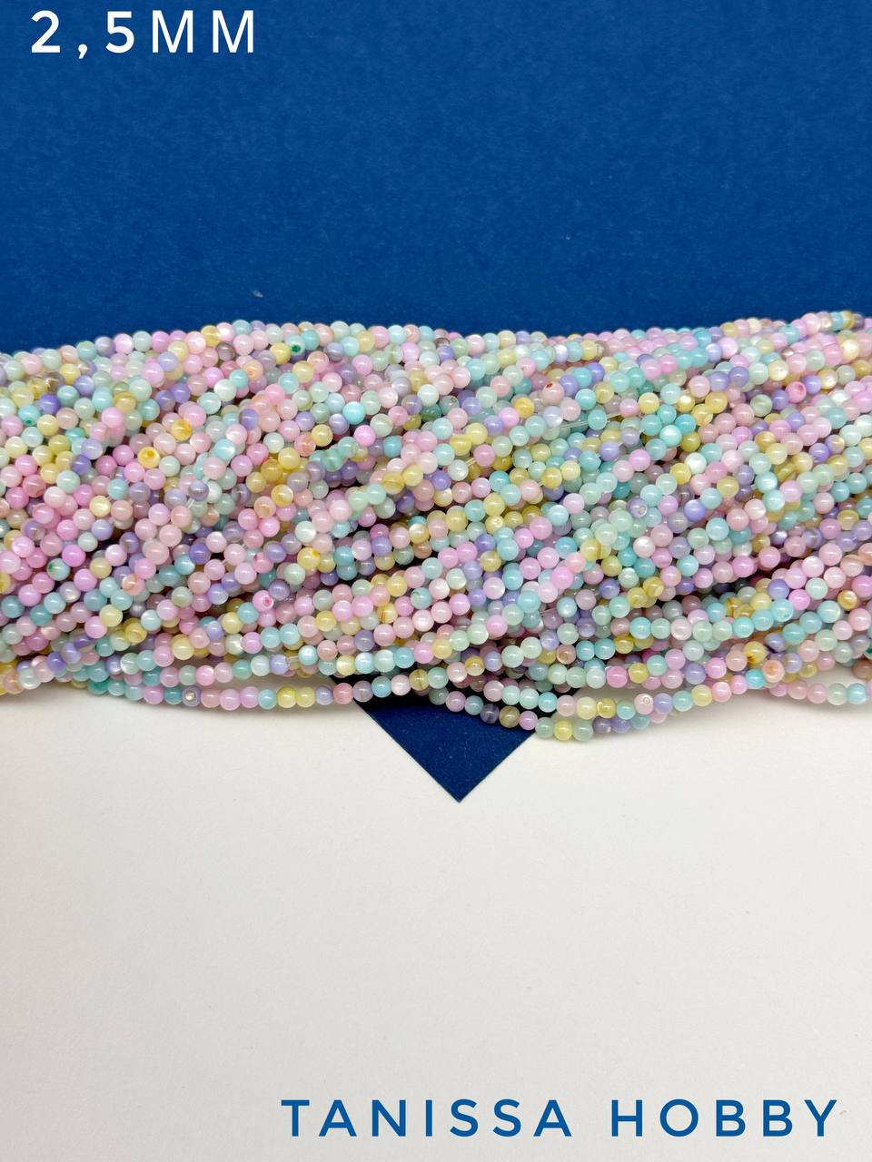 Перламутр морской, бусины круглые 2,5мм, цветной микс, нить, ПМ133