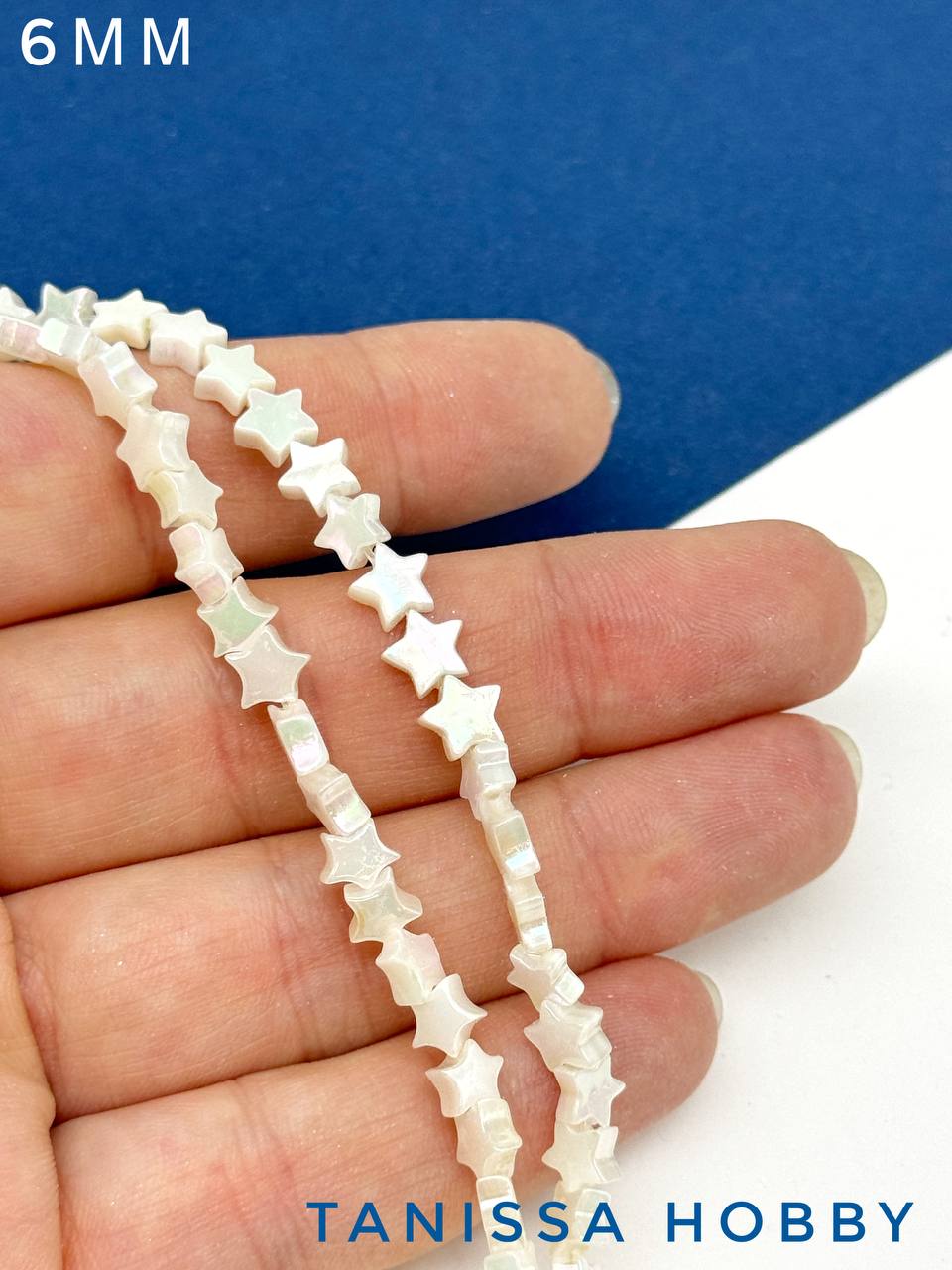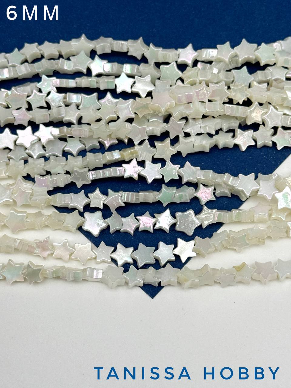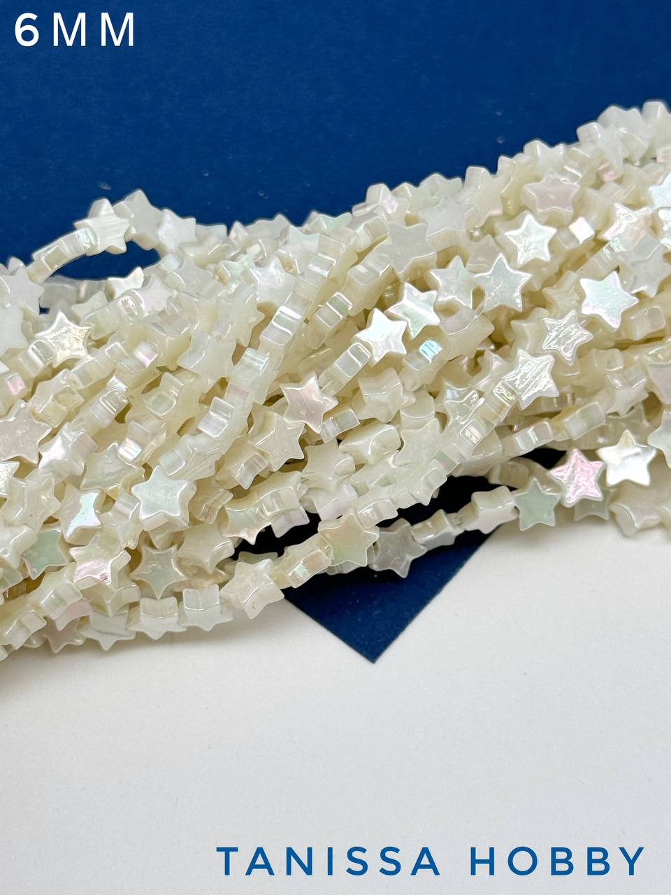 Перламутр бусины радужный речной, Звезда, 6мм, 1/2 нити, ПМ136