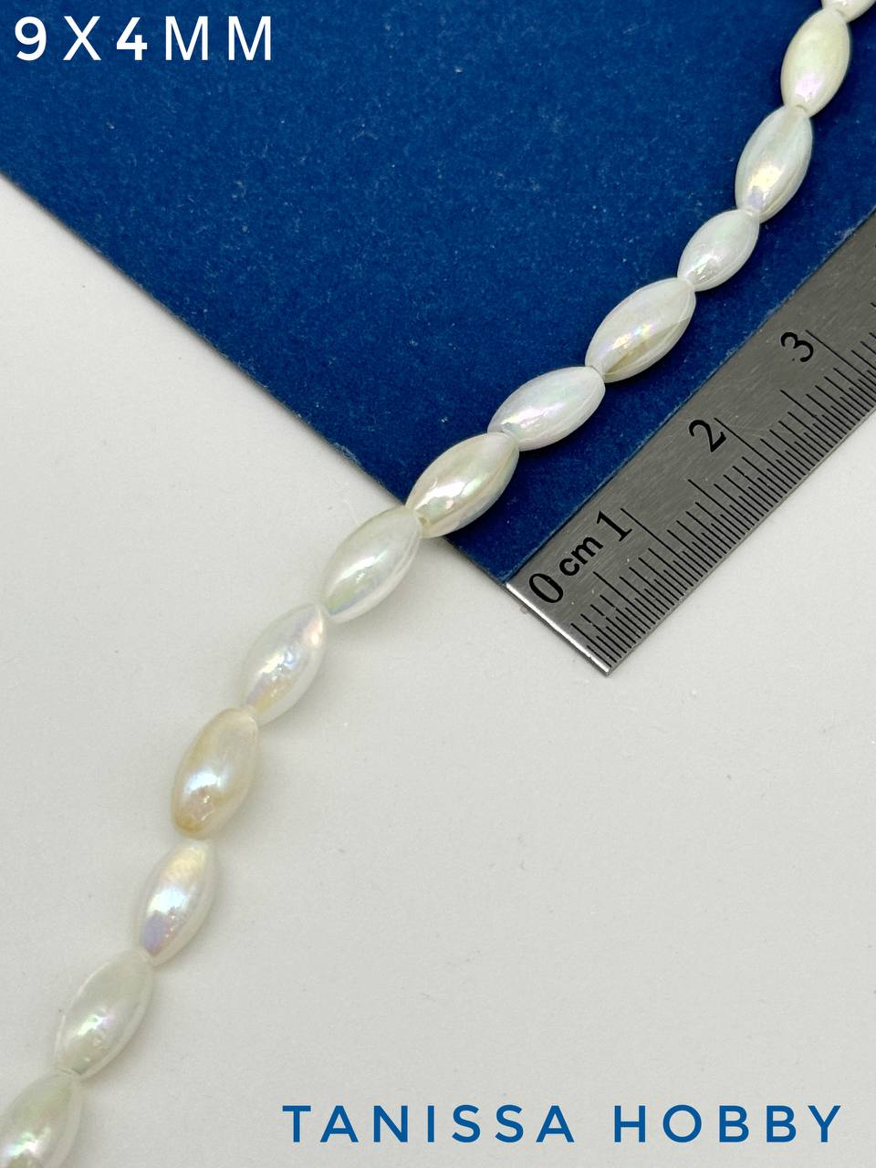 Перламутр бусины речной радужный, рис, 9х4мм, нить, ПМ139