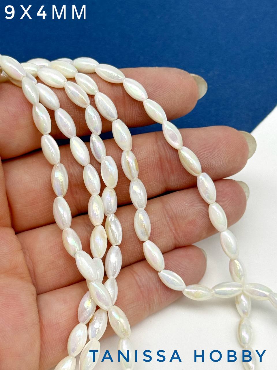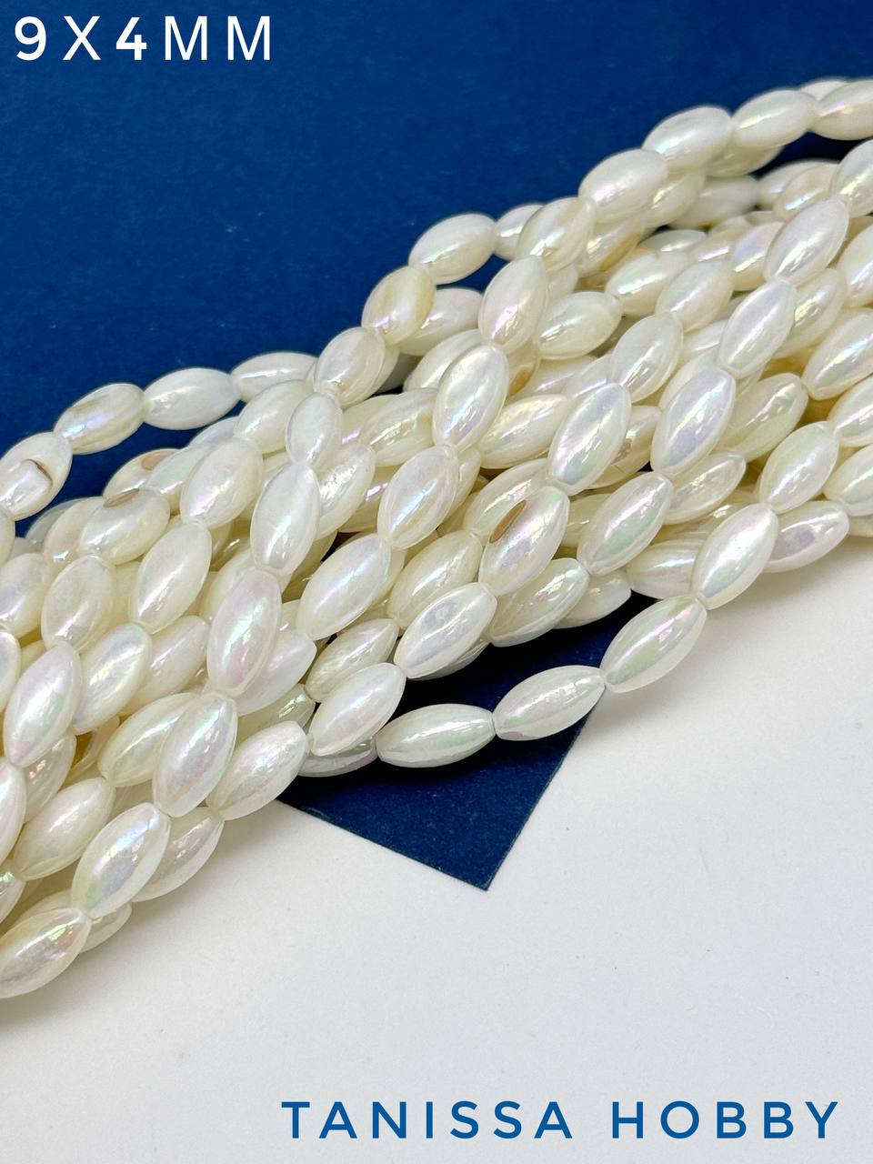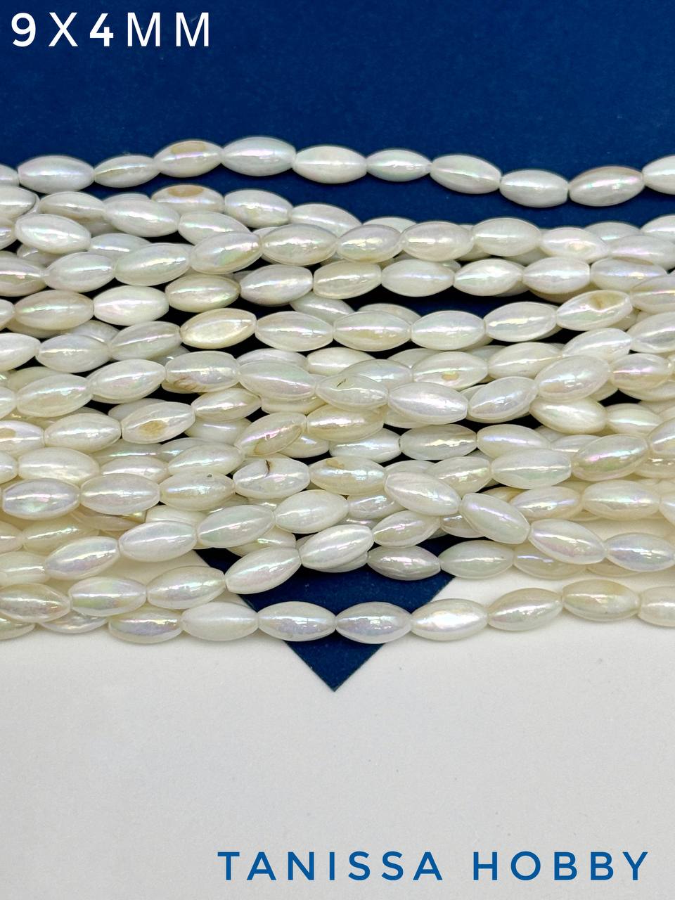 -Перламутр бусины речной радужный, рис, 9х4мм, нить, ПМ139