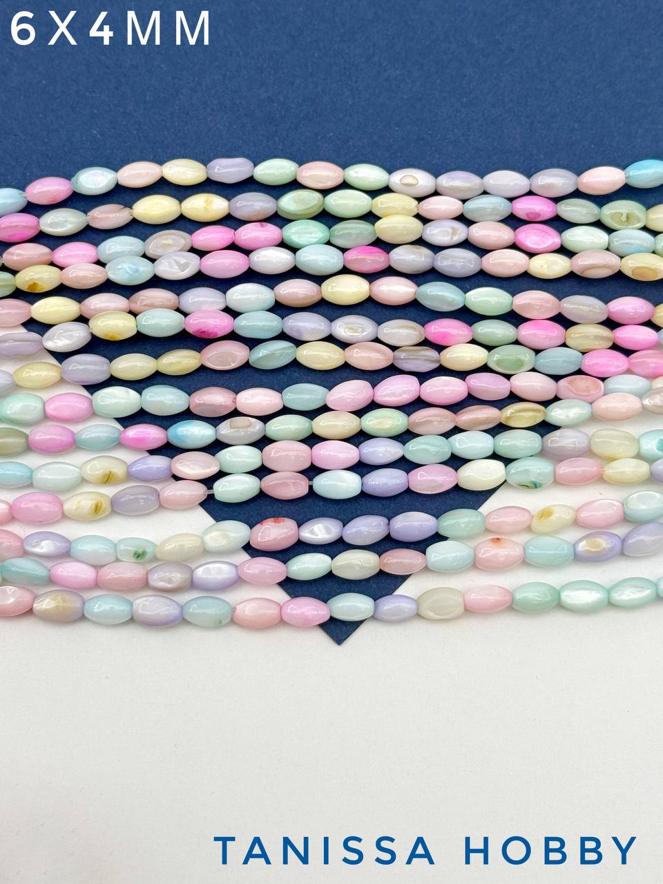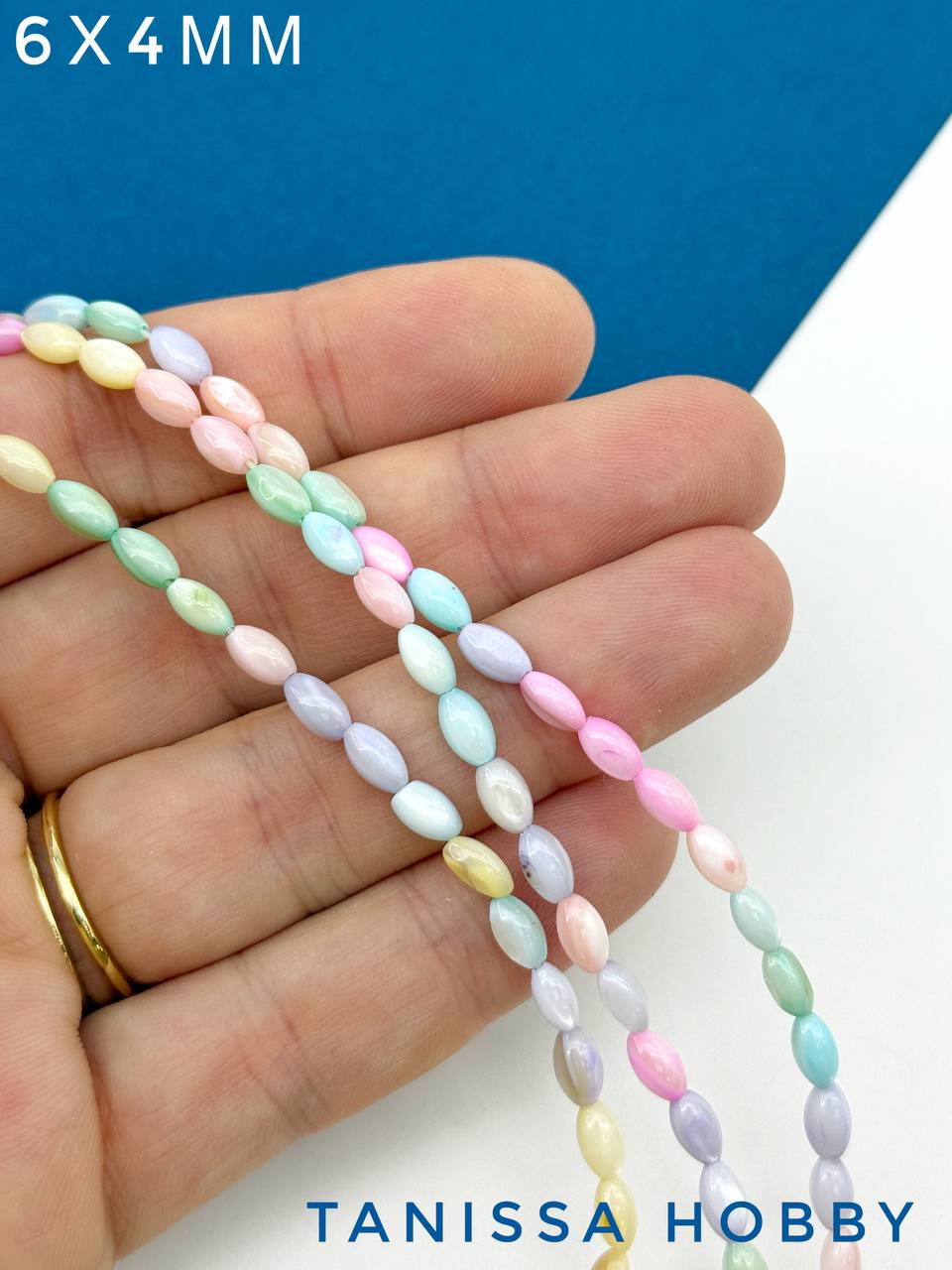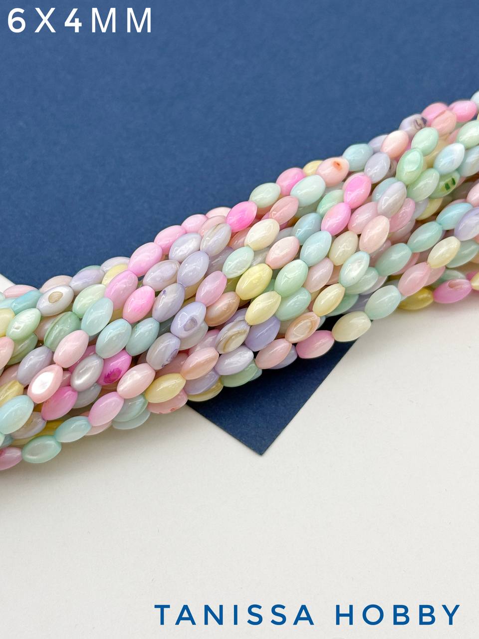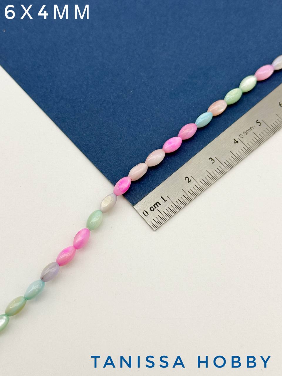 -Перламутр бусины морской, цветной микс, рис, 6х4мм, нить, ПМ061