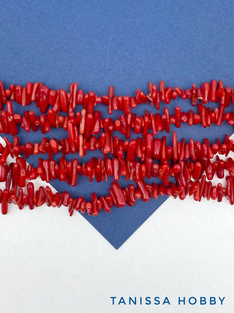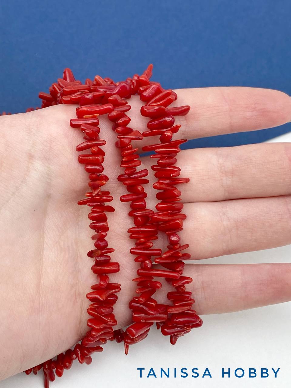 Имитация коралловых бусин изготовлена из натурального речного перламутра, затонированного под бусины коралла