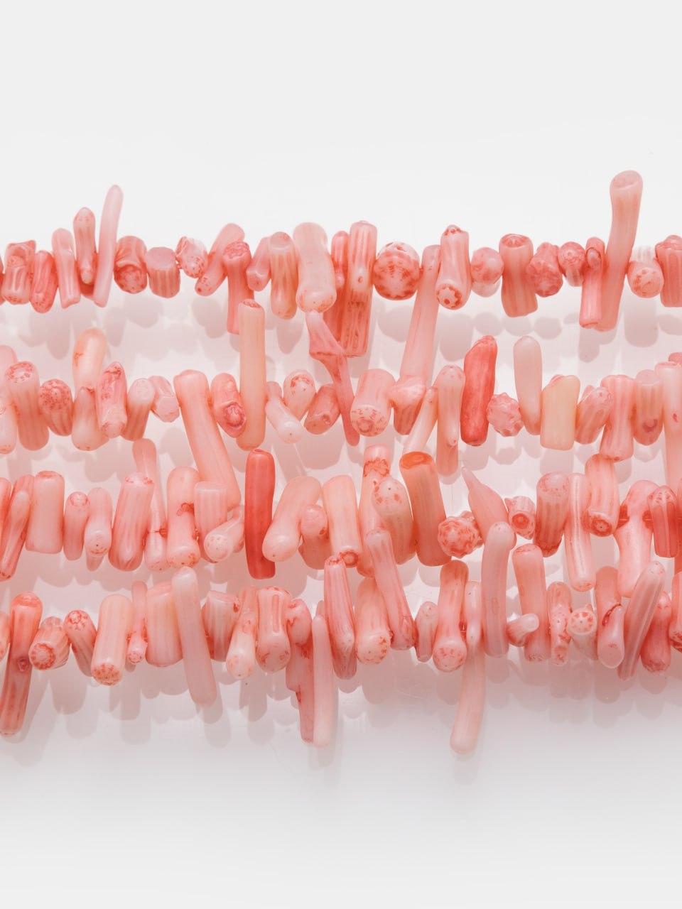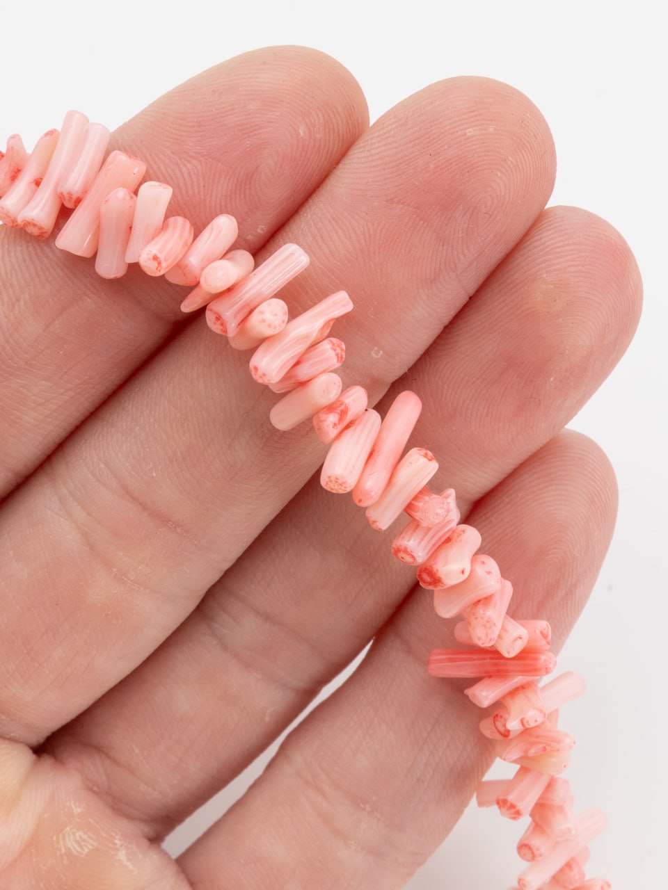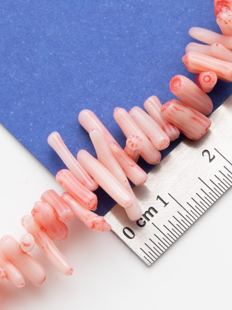 Имитация коралловых бусин изготовлена из натурального речного перламутра, затонированного под бусины коралла