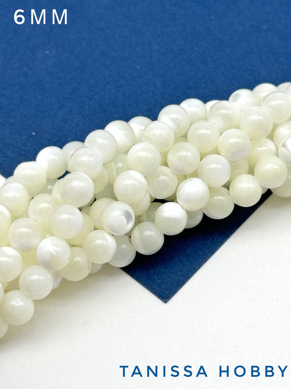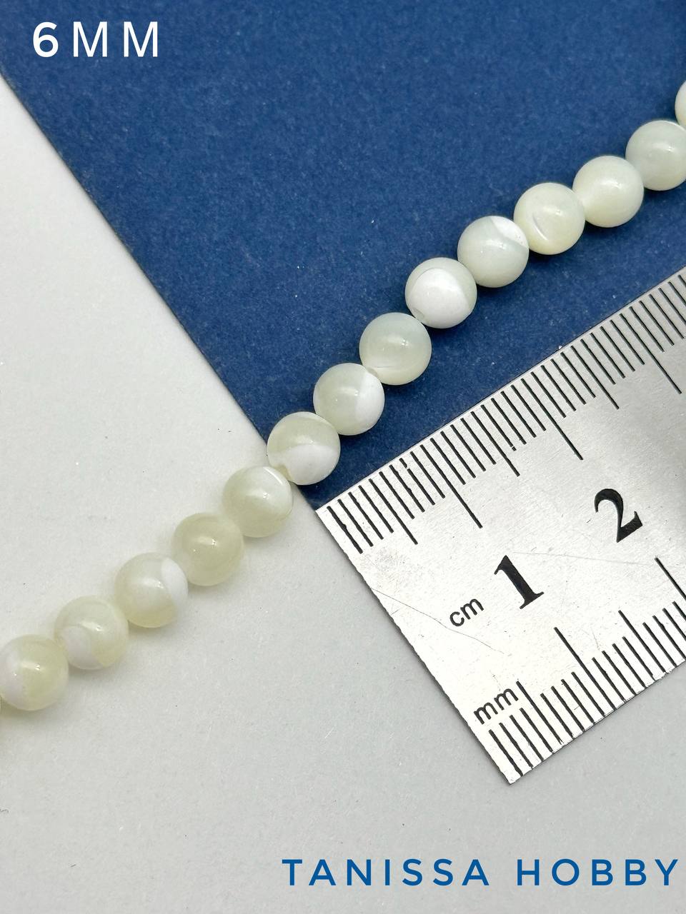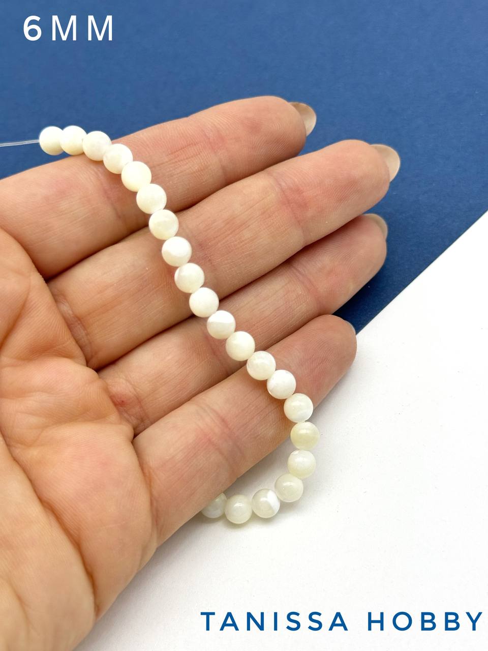 -Перламутр морской, бусины круглые, 6мм, нить, ПМ002