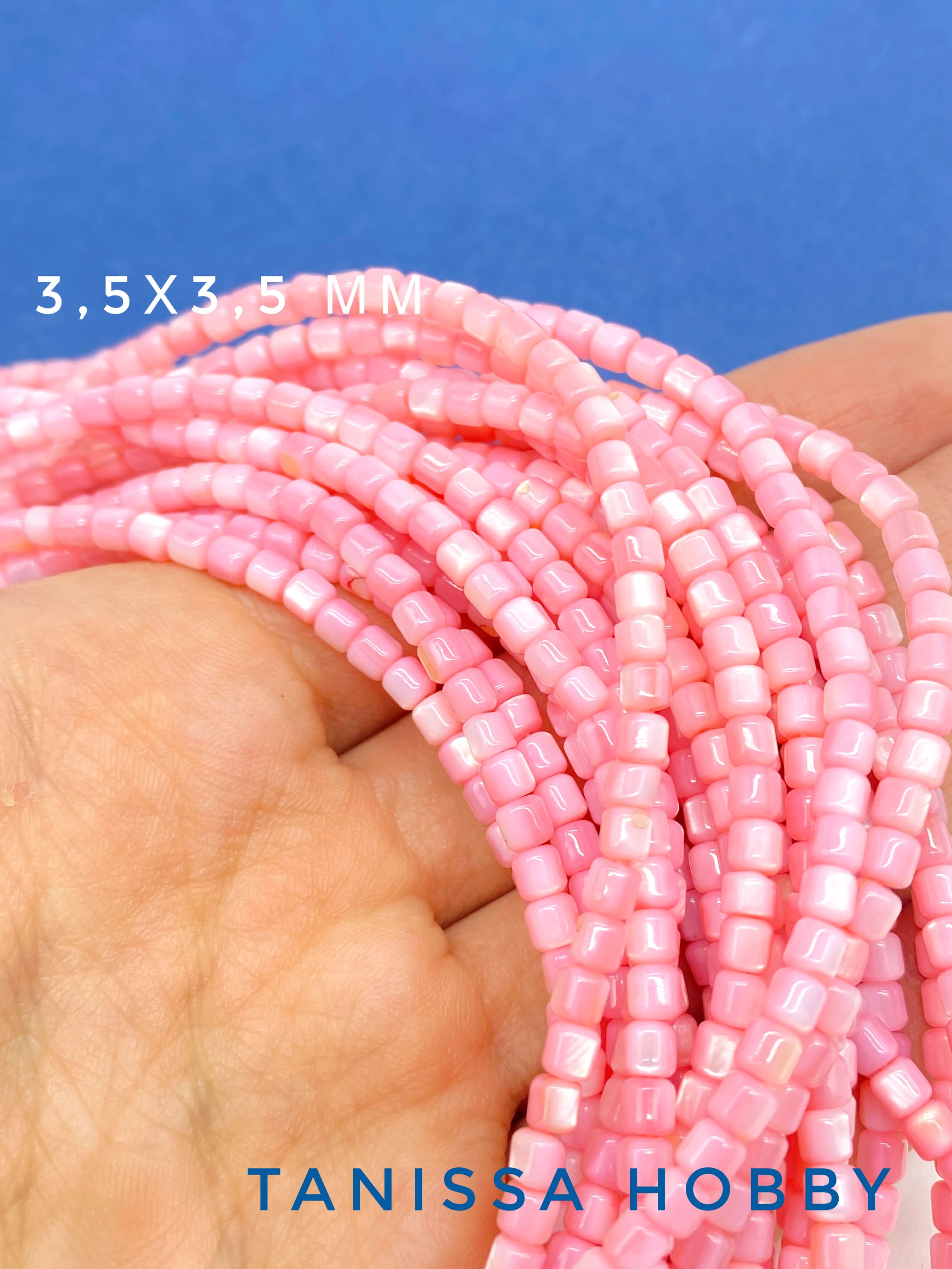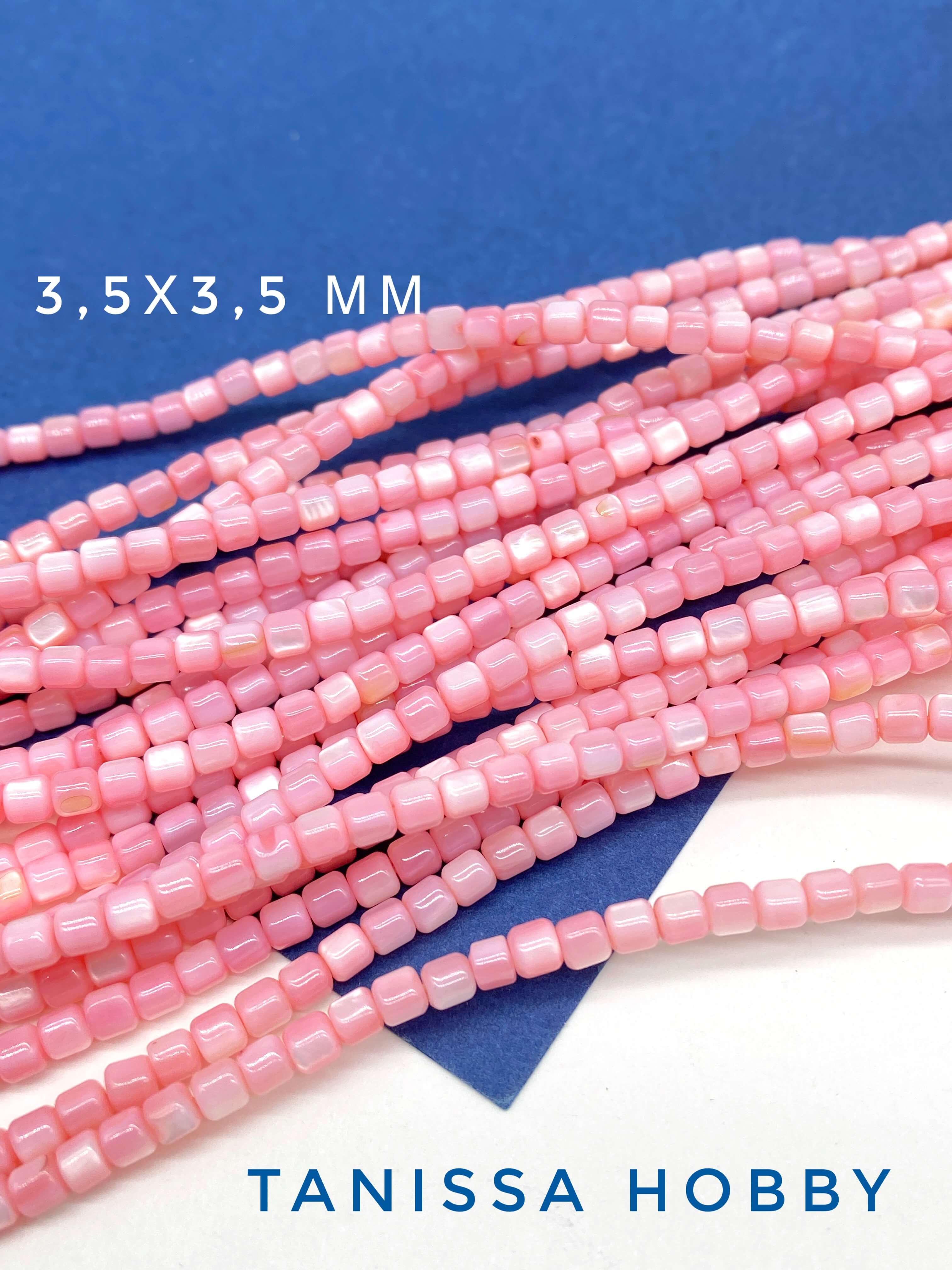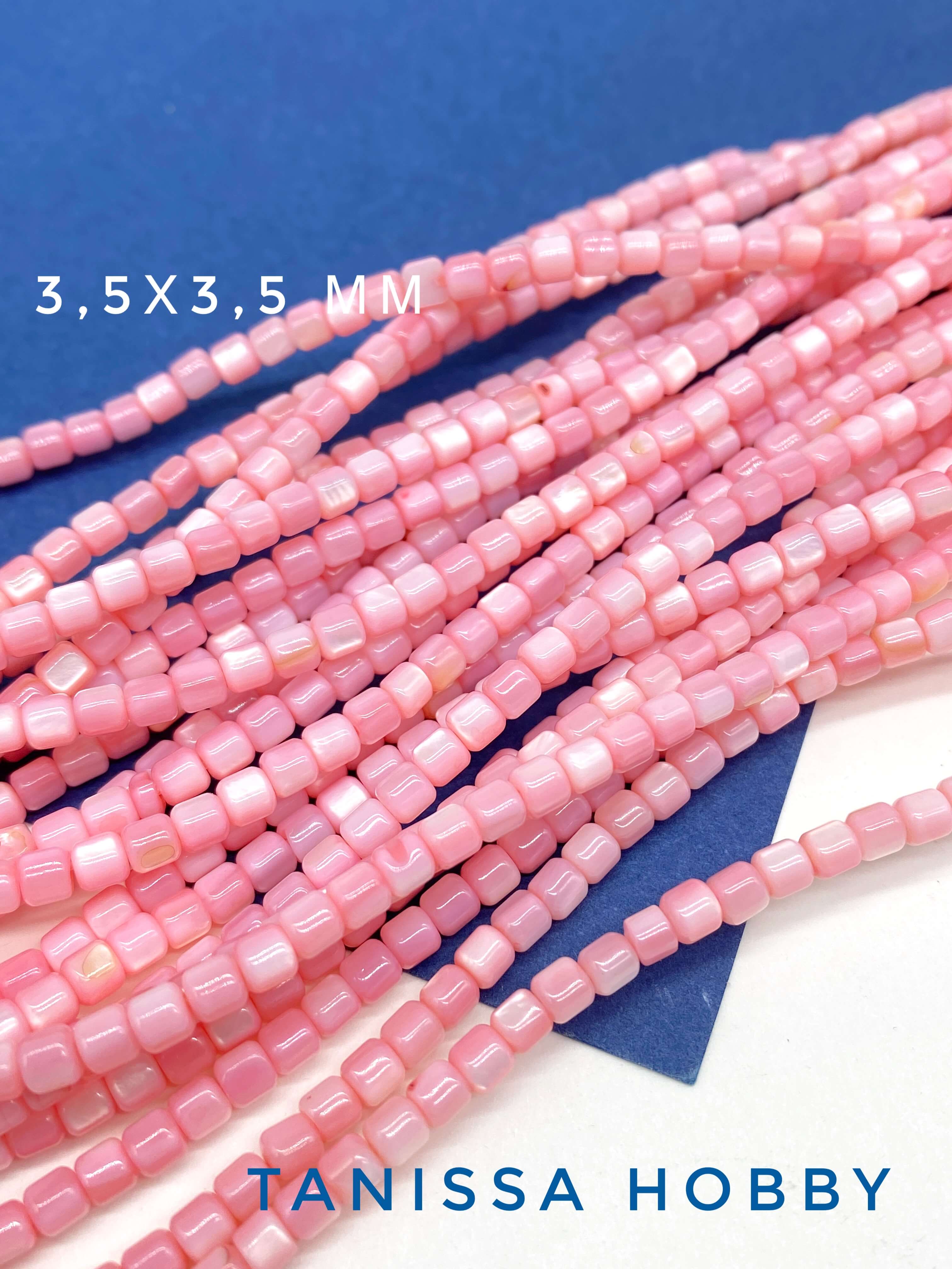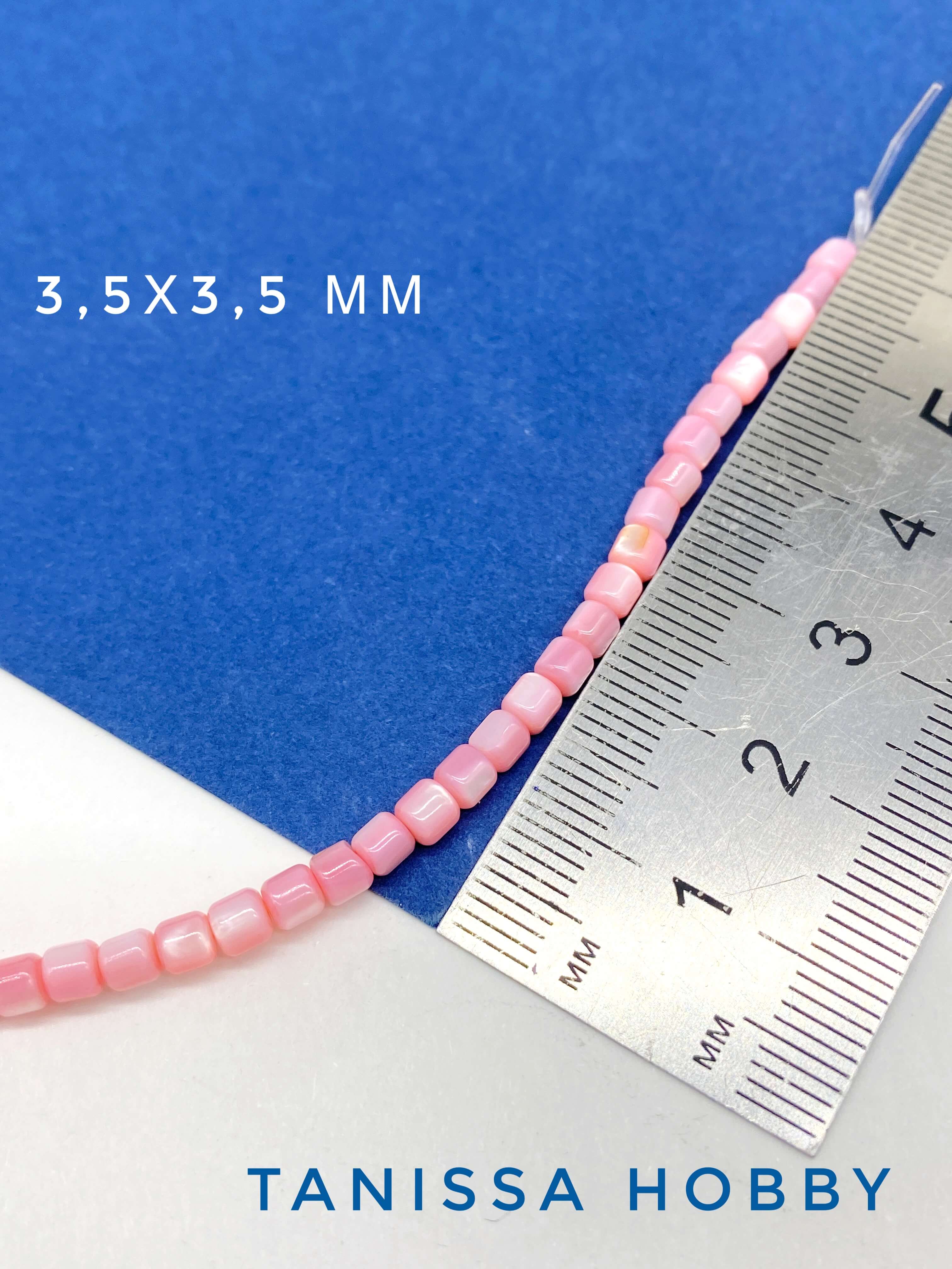 Перламутр бусины бочонок 3,5 мм, розовый, нить, ПМ009