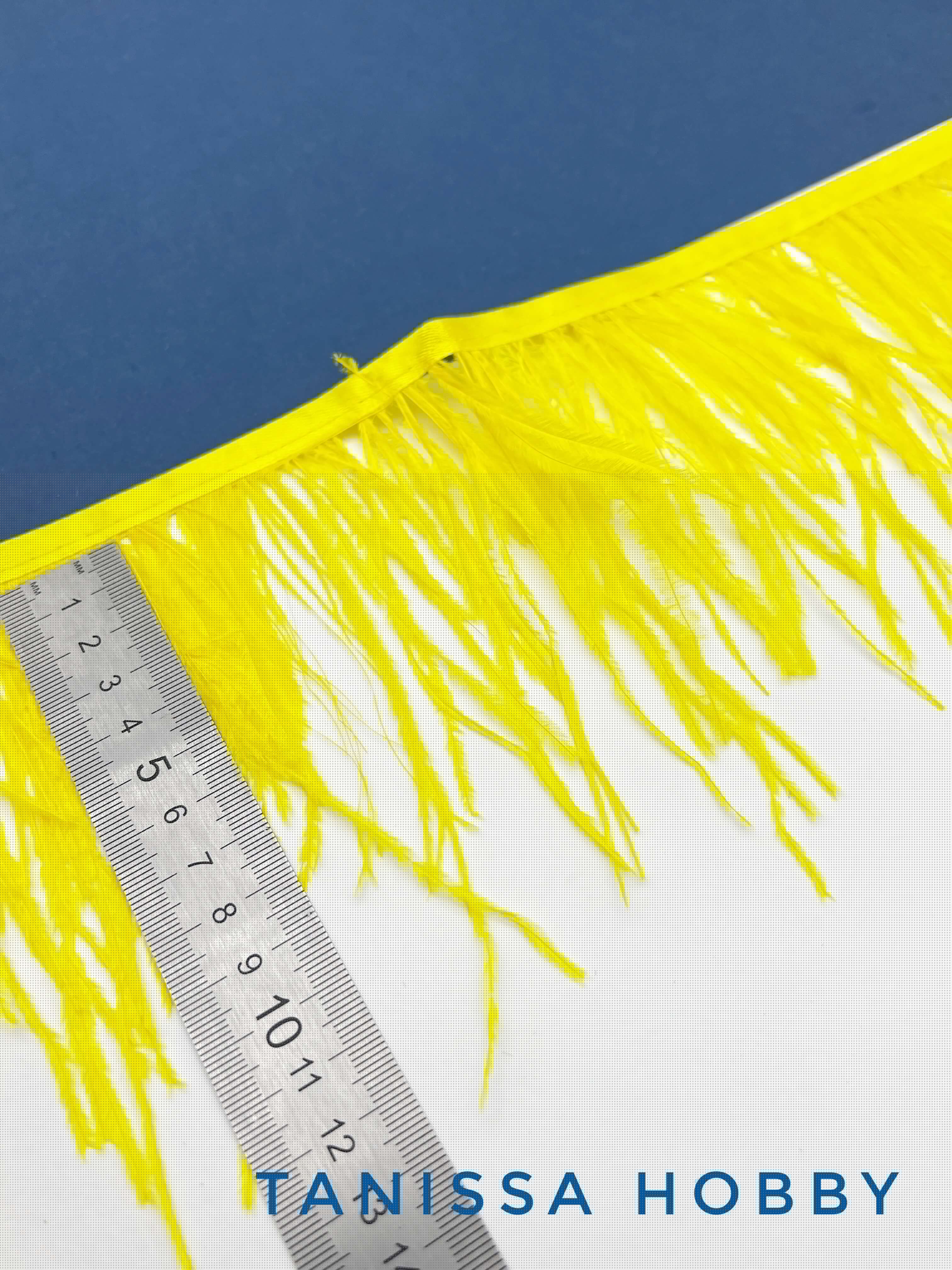 Перья на ленте страусиные желтые, 10см, ПЕР004