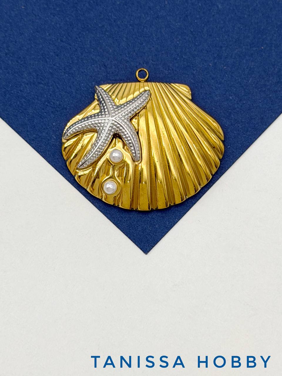 Подвеска ракушка гребешок и морская звезда, биколор, сталь, позолота, Ш520