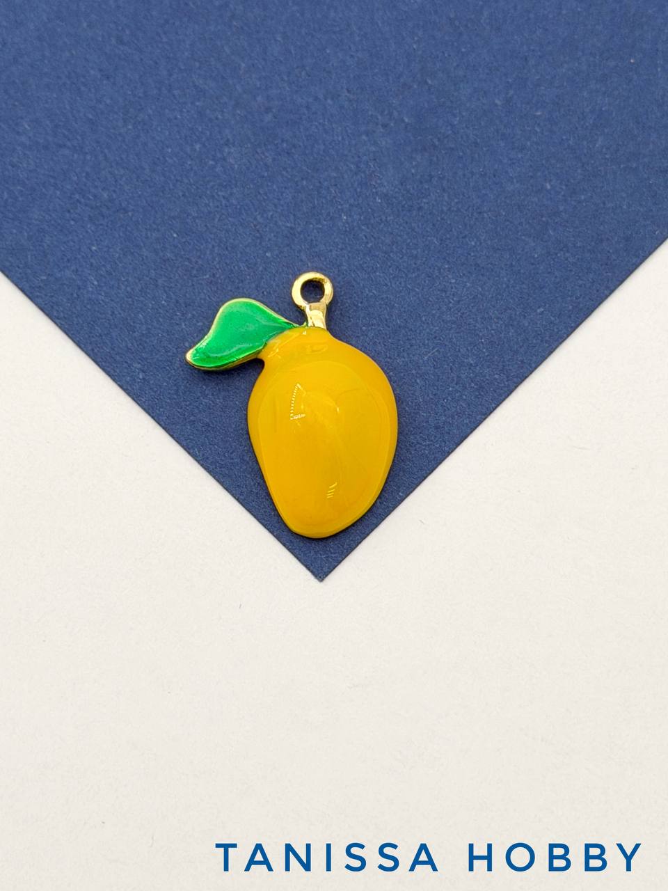 Подвеска фрукт манго, желтая эмаль, сталь, позолота, Ш521