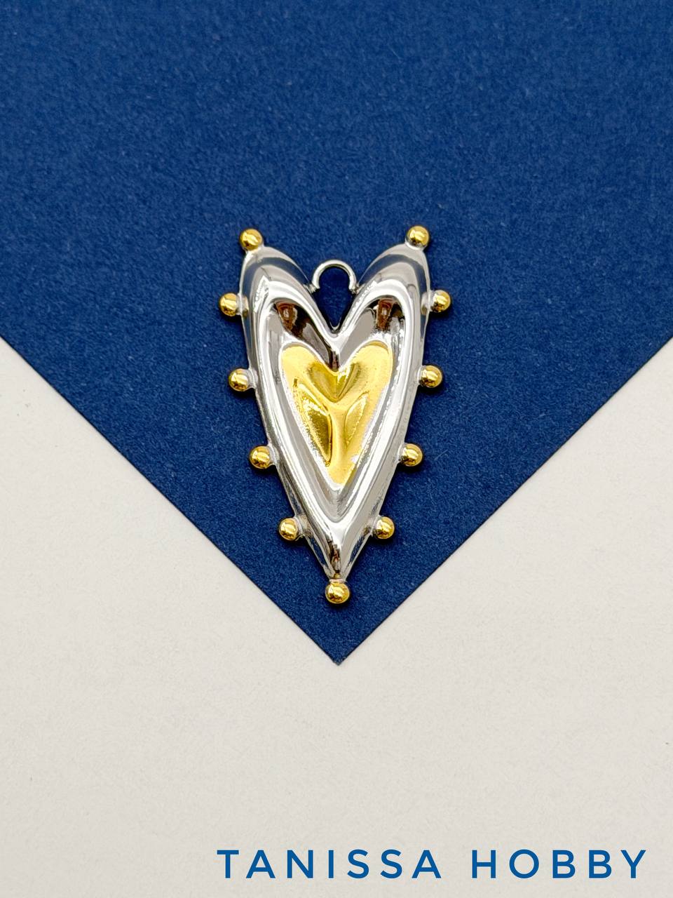 Подвеска сердце, биколор, сталь, позолота, Ш524