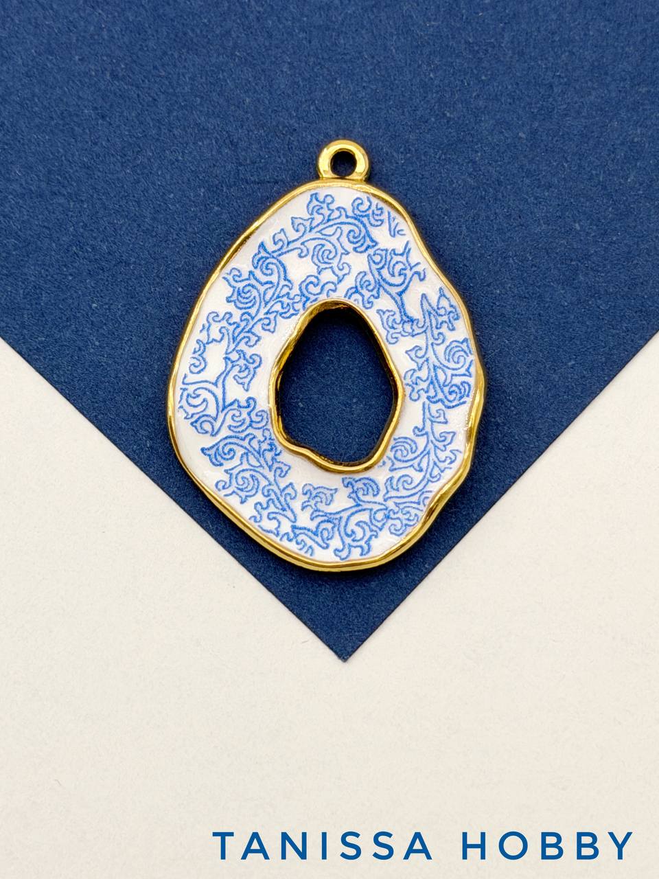 Подвеска капля овал гжель, эмаль, сталь, позолота, Ш522