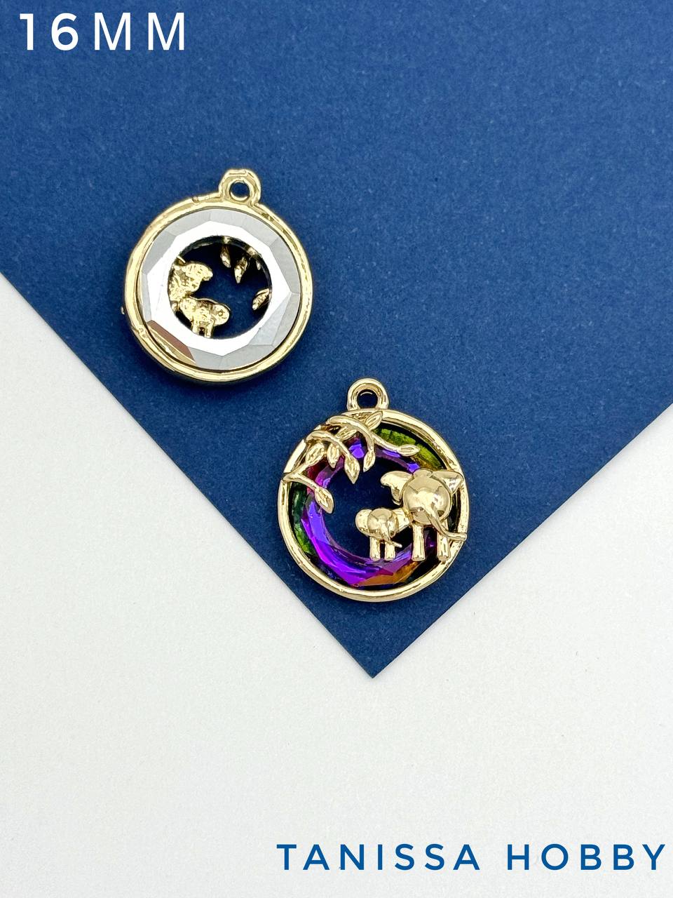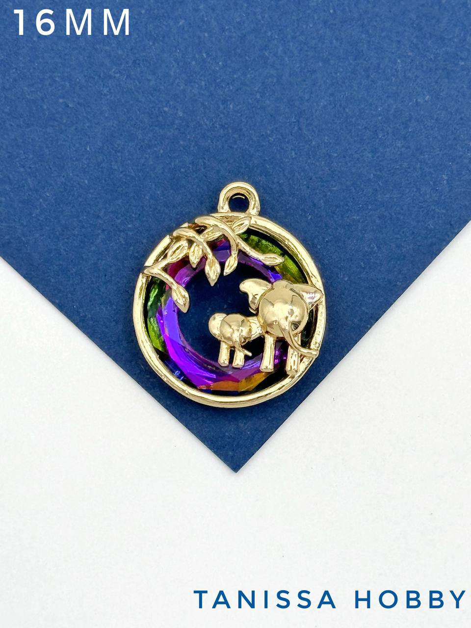 Подвеска Слон и слоник, рондель Vitral medium, позолота, Д136