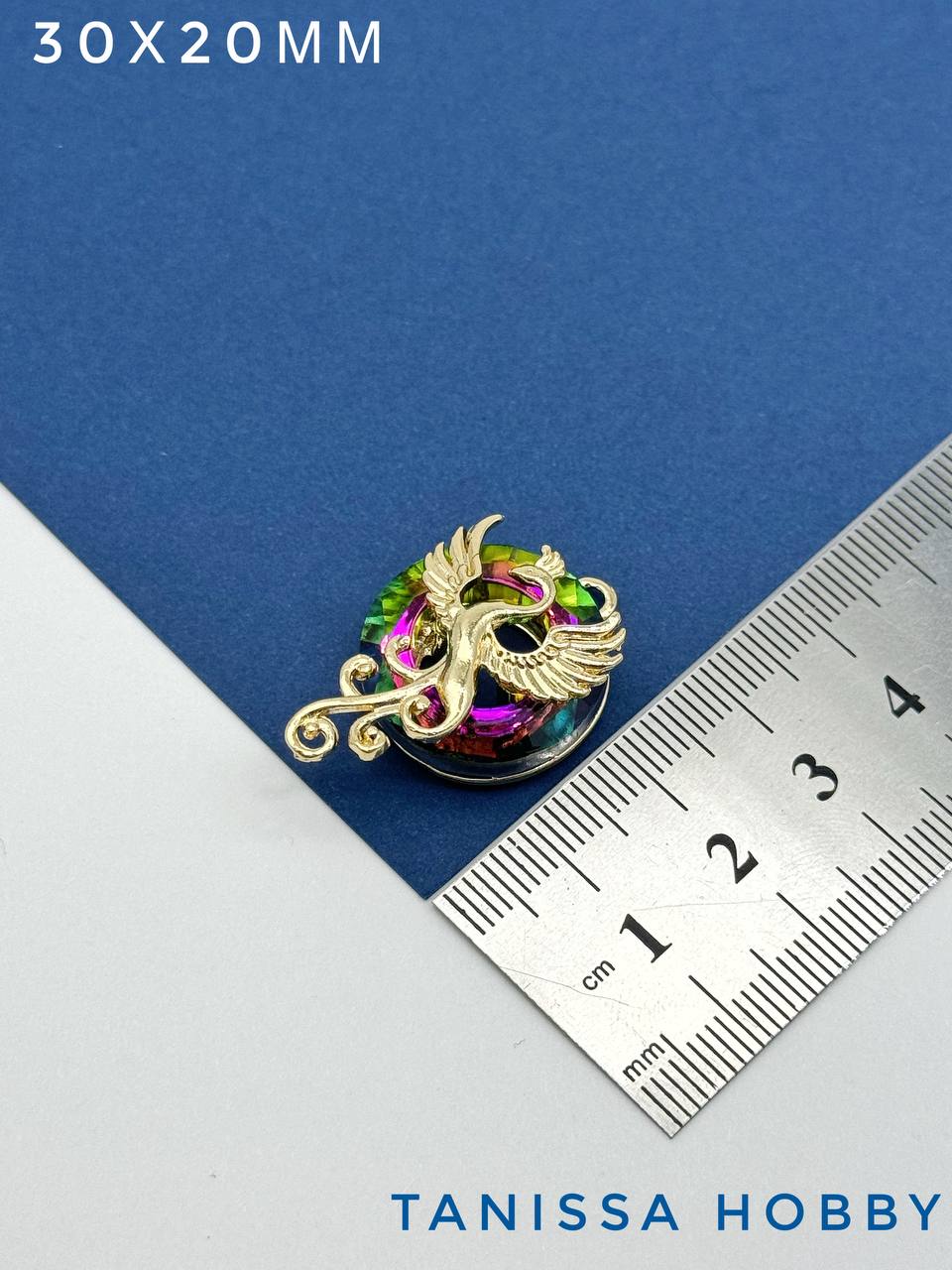 Подвеска в виде птицы феникса с вставкой из стекла в оттенке Vitral medium