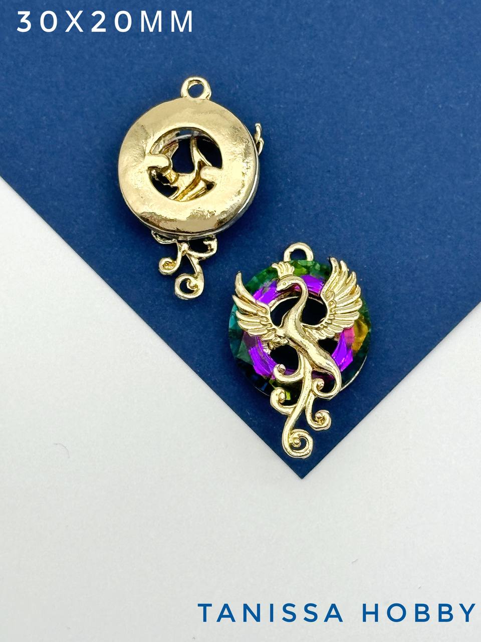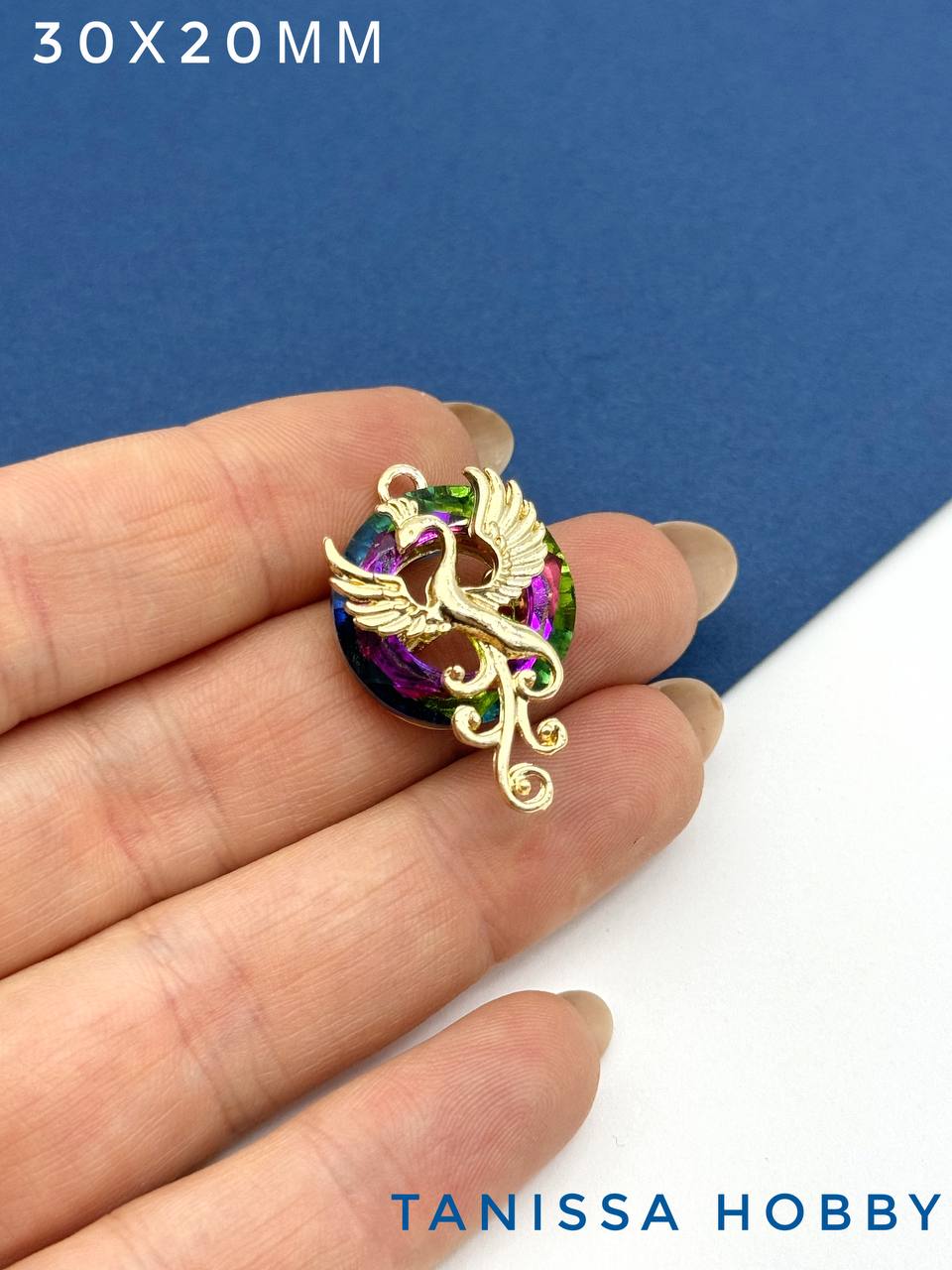 Подвеска птица Феникс, рондель Vitral medium, позолота, Д146