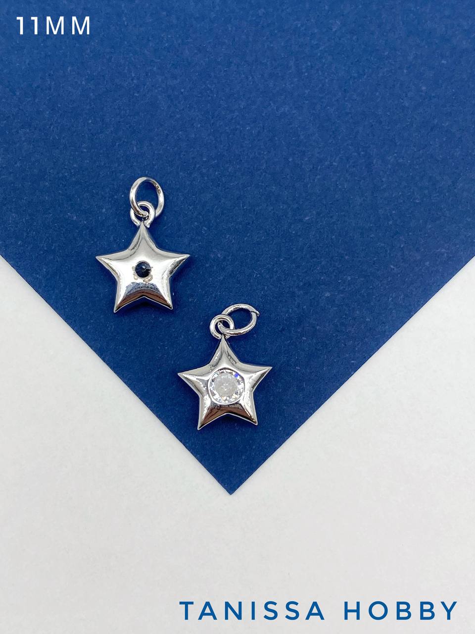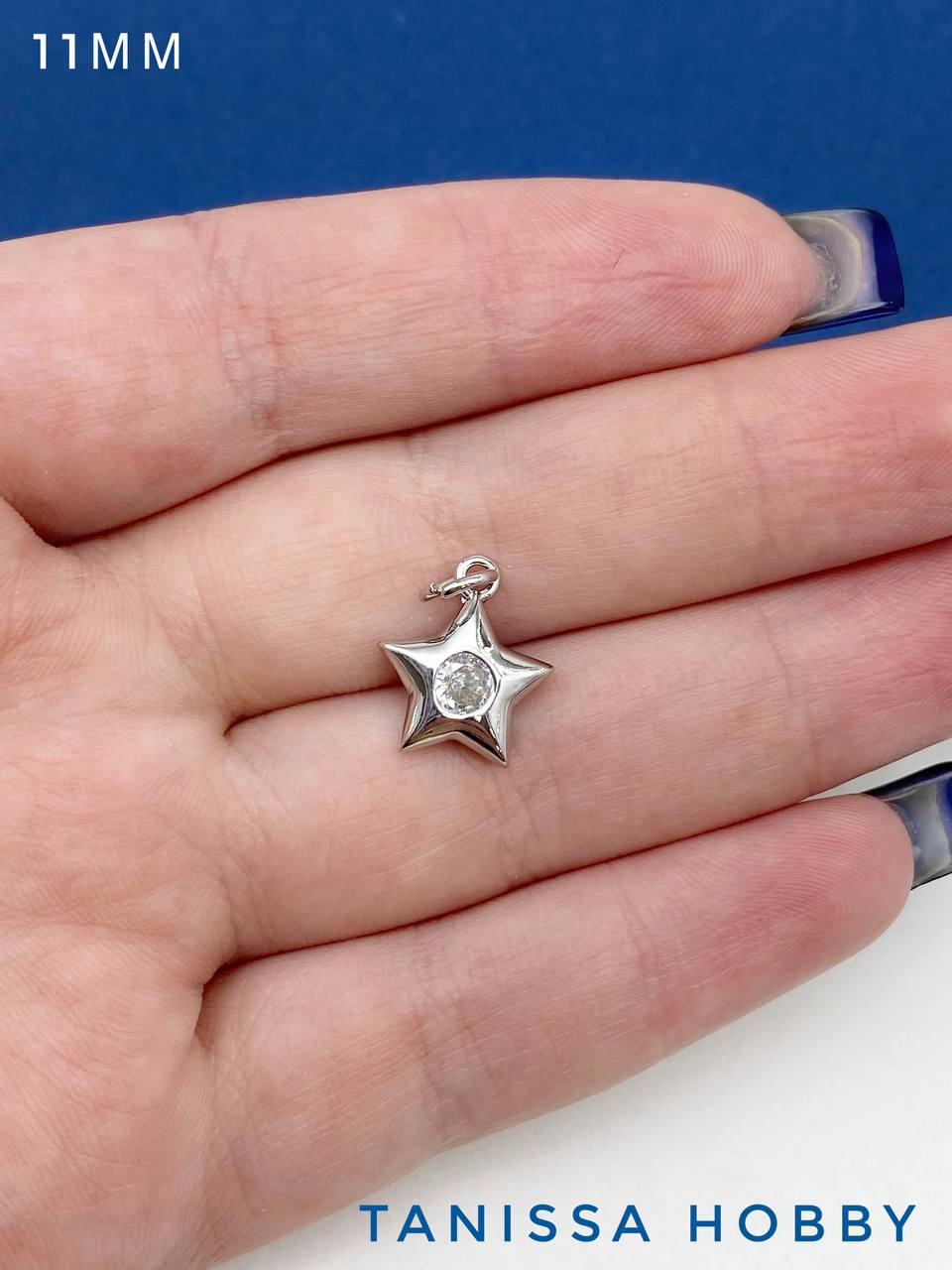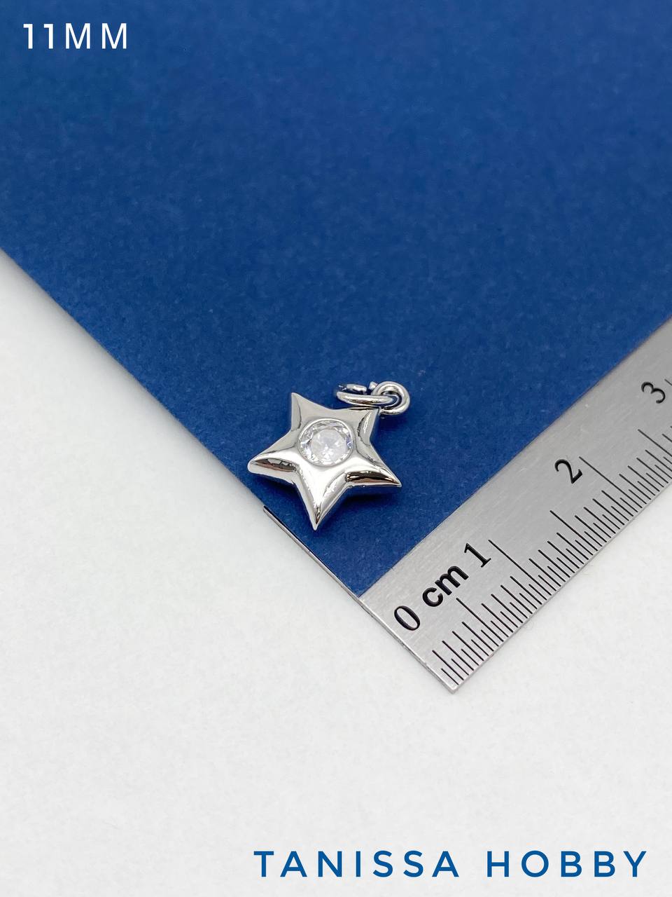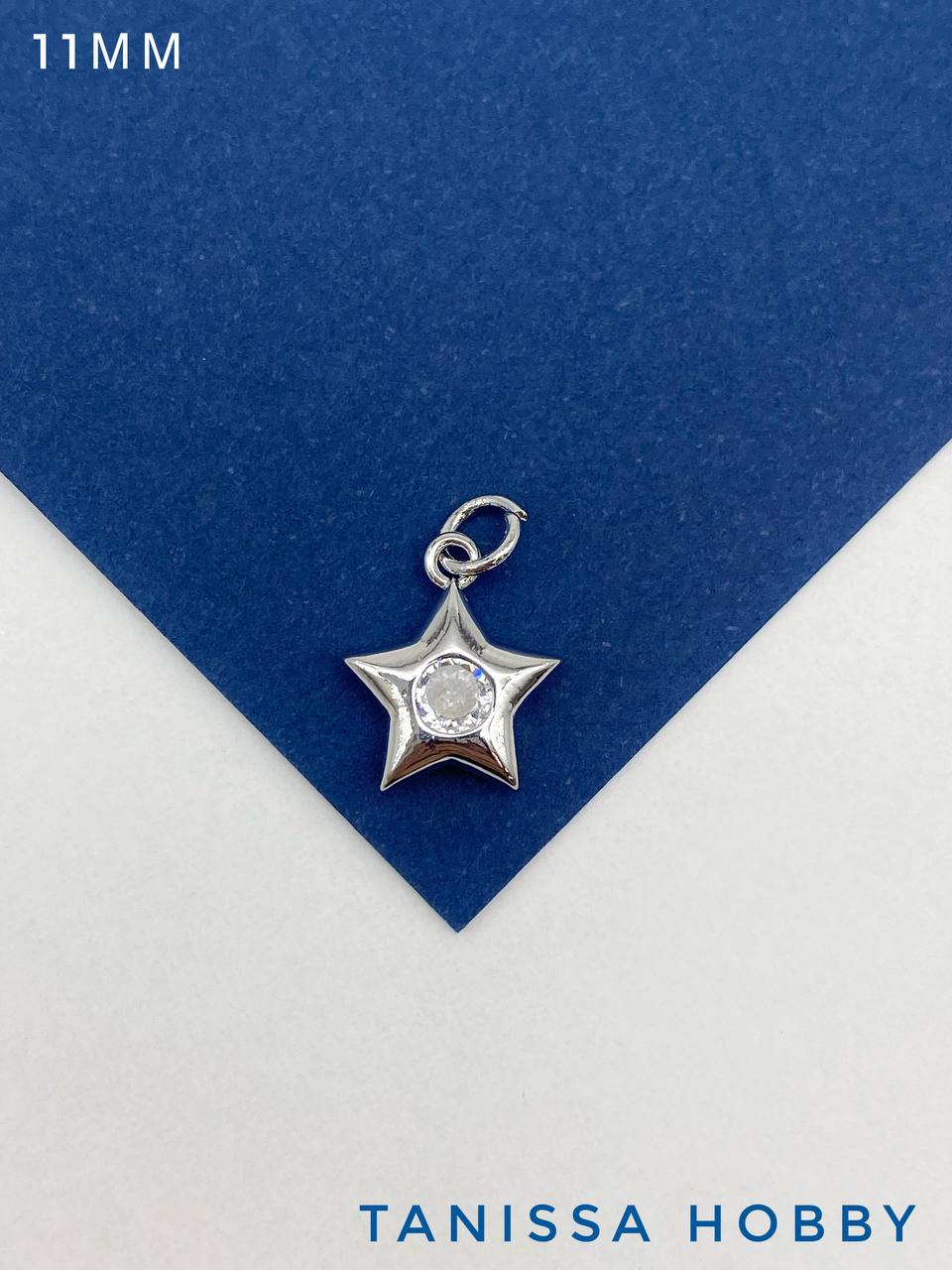 Подвеска звезда пухлая с фианитом, 11мм, родий, С714
