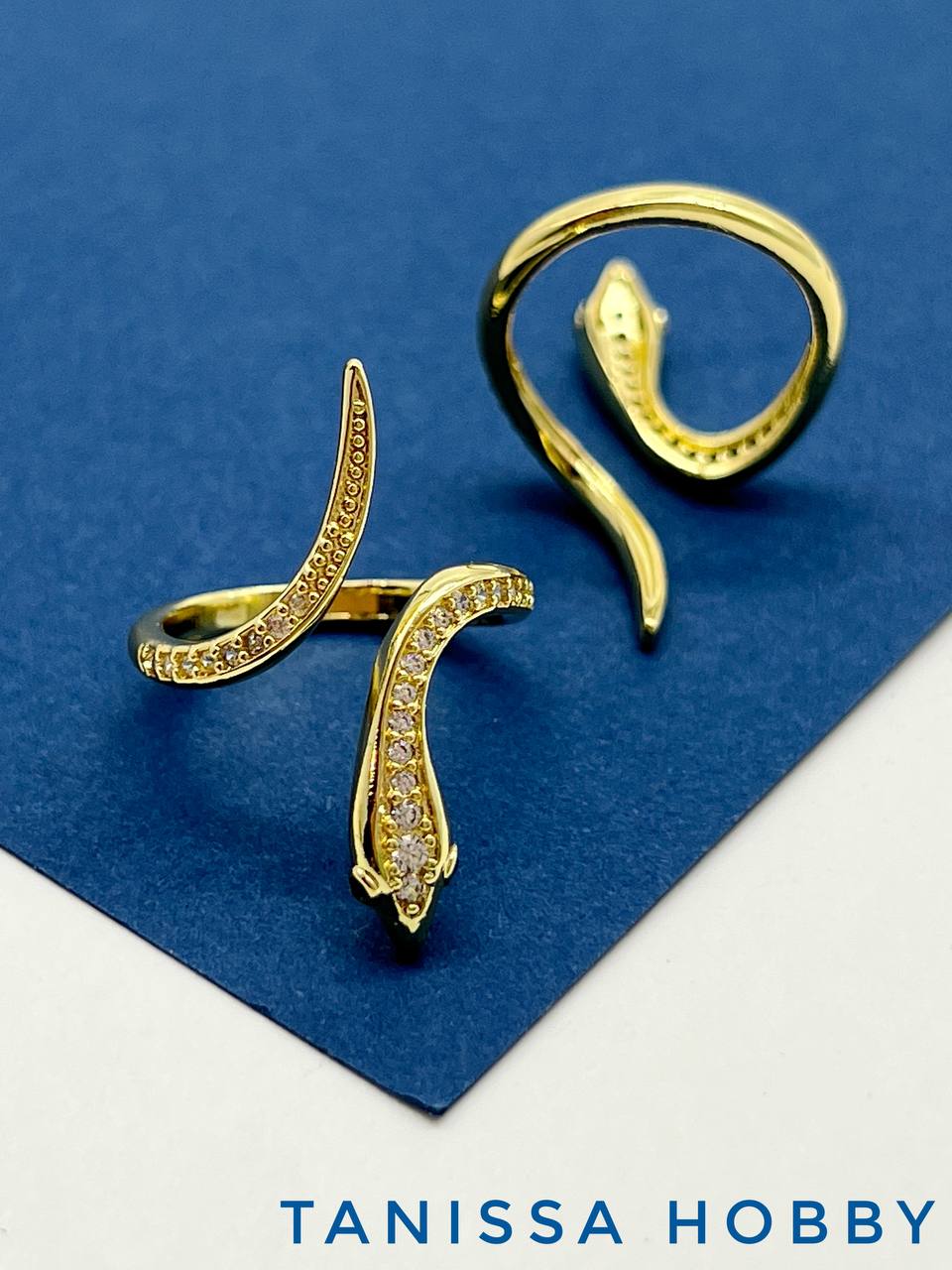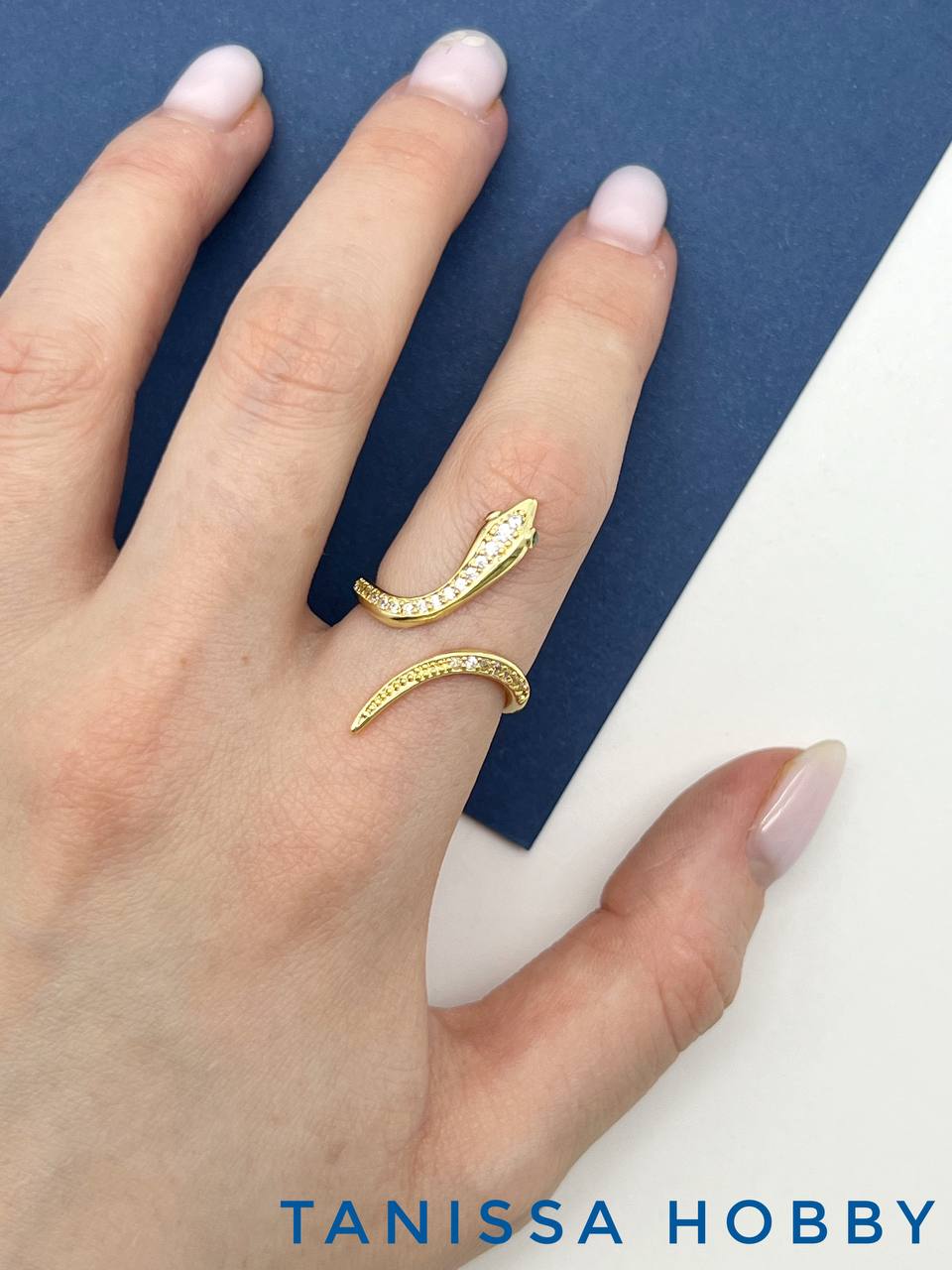 Кольцо безразмерное, змея, позолота, У058