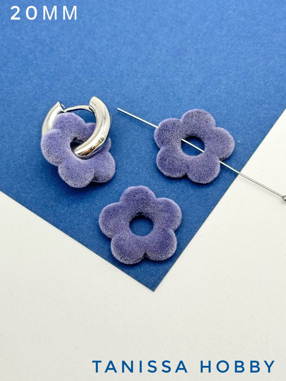 Подвеска бусина плюшевый цветок 20мм, фиолетовый бархат, Ю030
