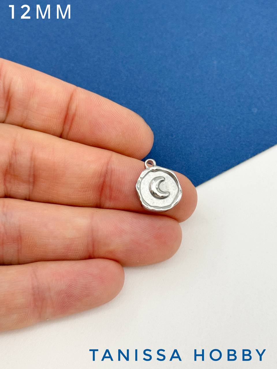 Подвеска монетка луна месяц, 12мм, сталь, Ч803