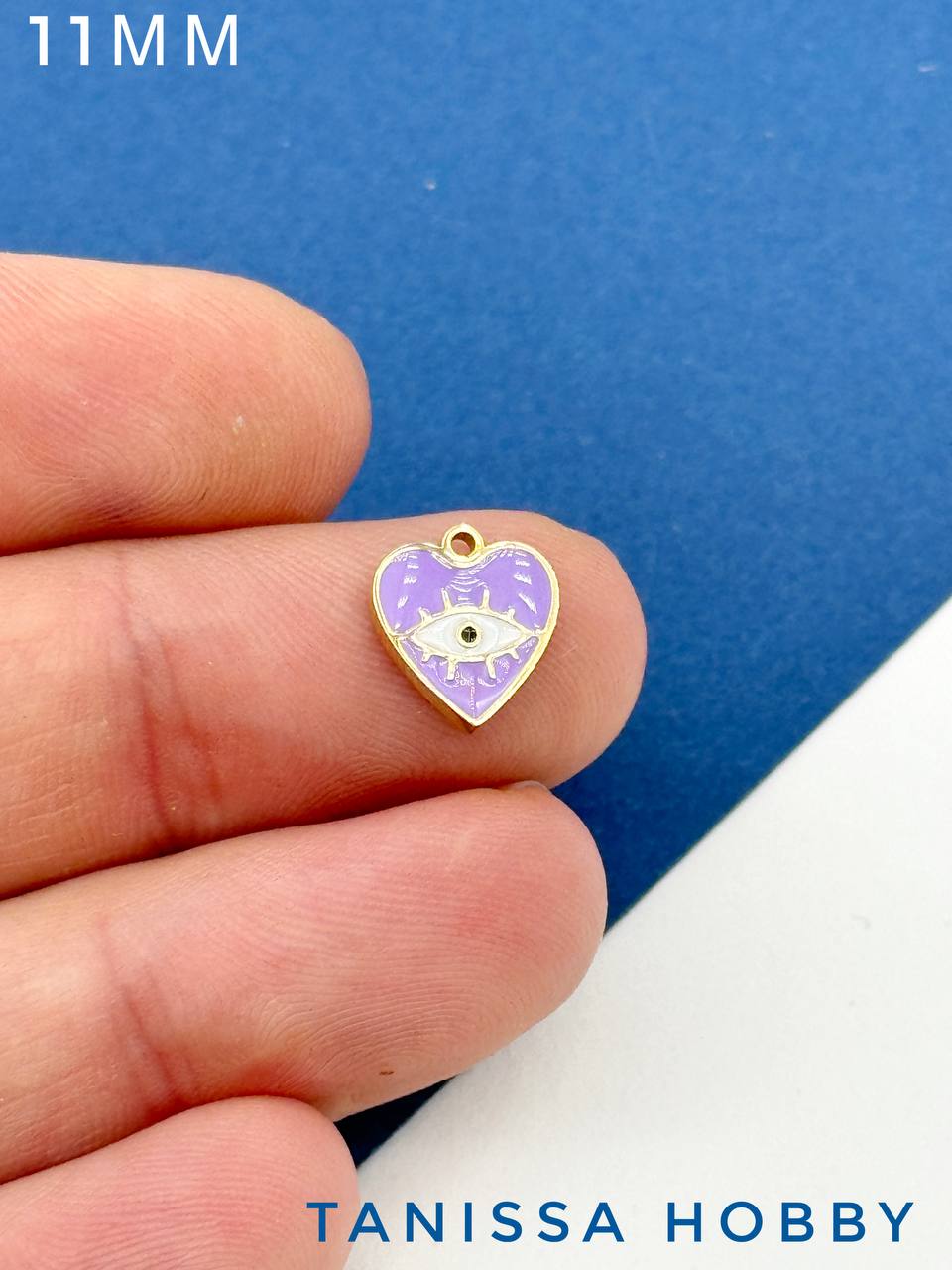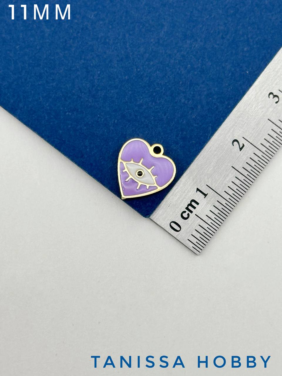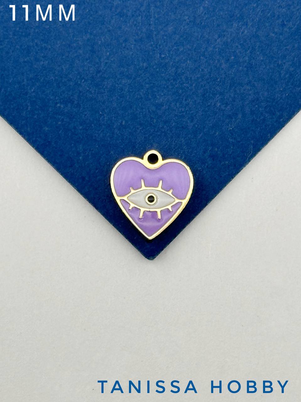 Подвеска сердце глаз, 11мм, фиолетовая эмаль, сталь, позолота, Ч120