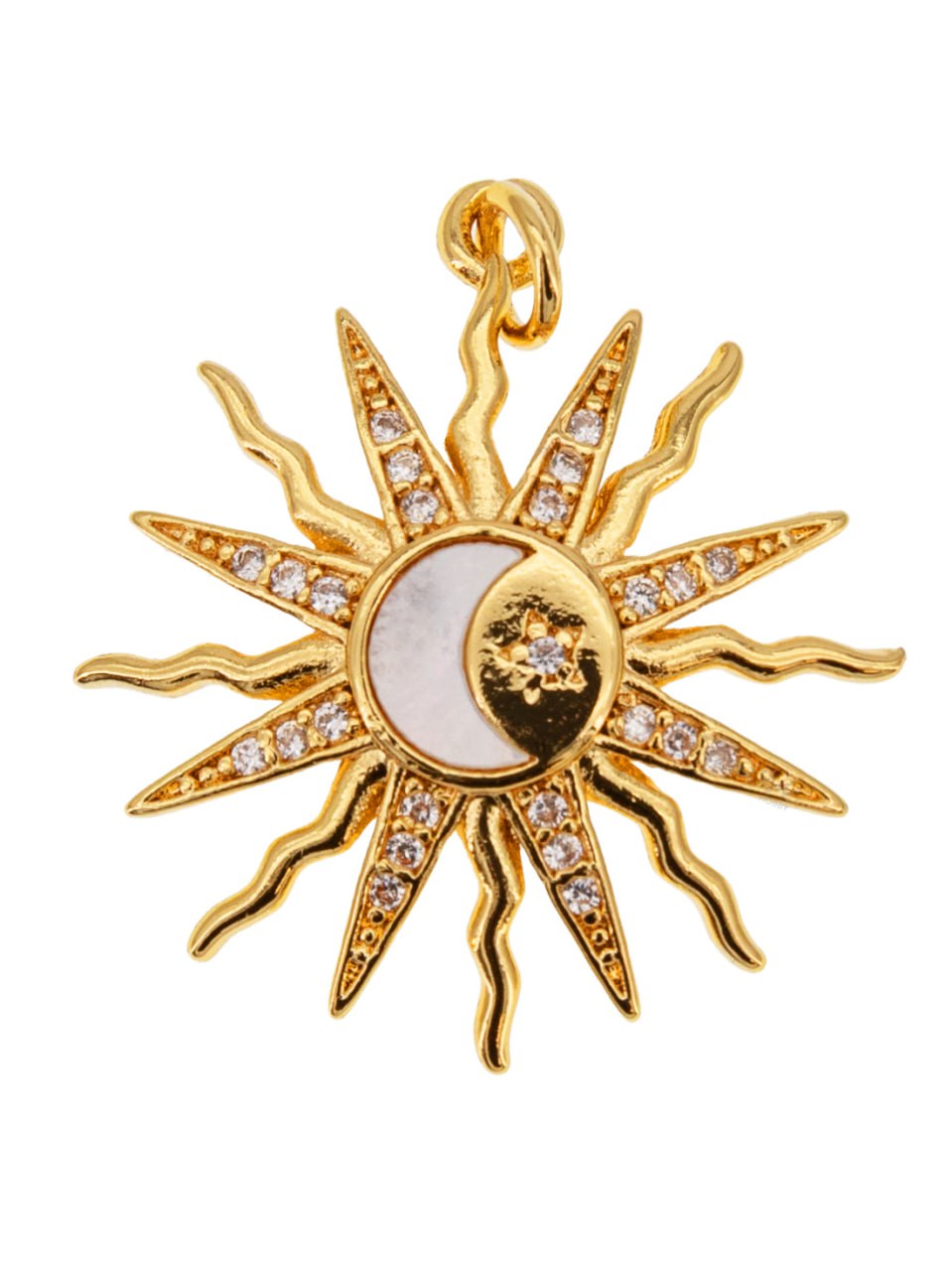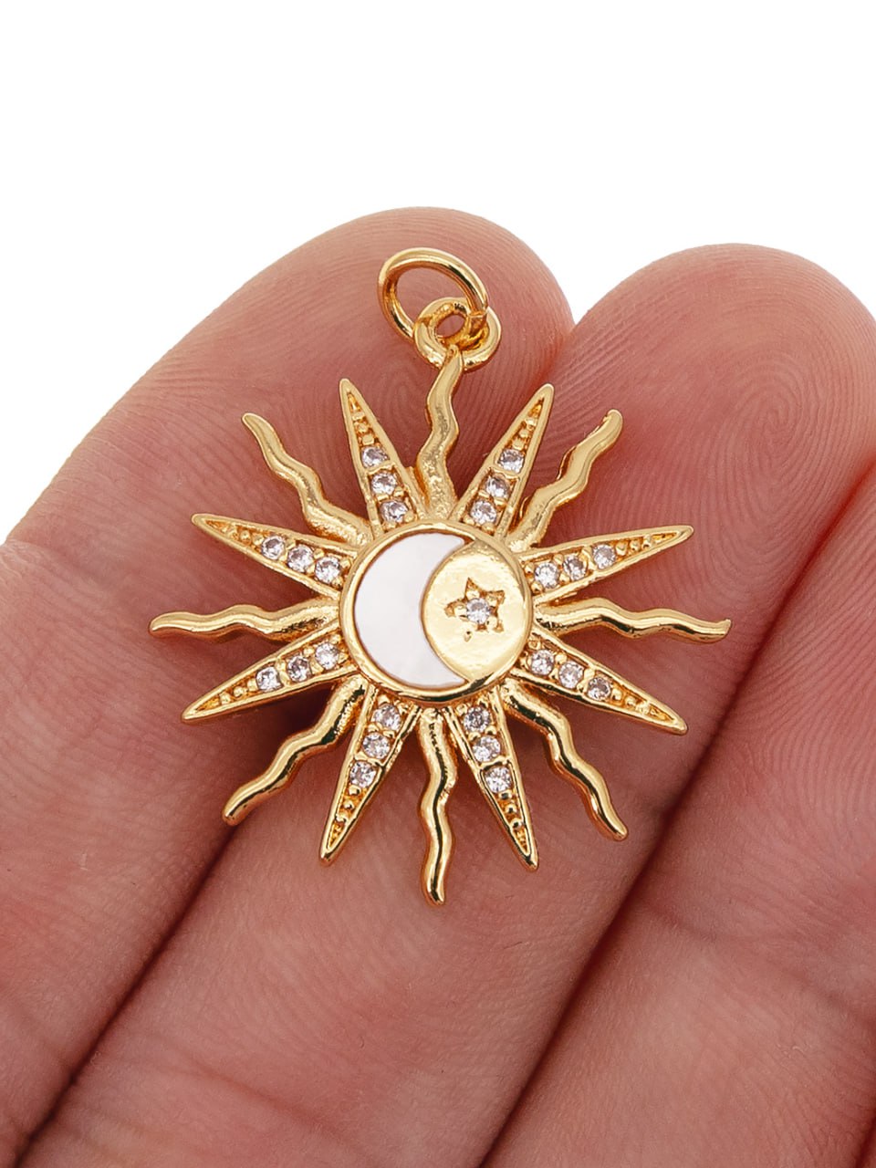 Подвеска солнце и луна перламутр, 22мм, позолота, Ю220