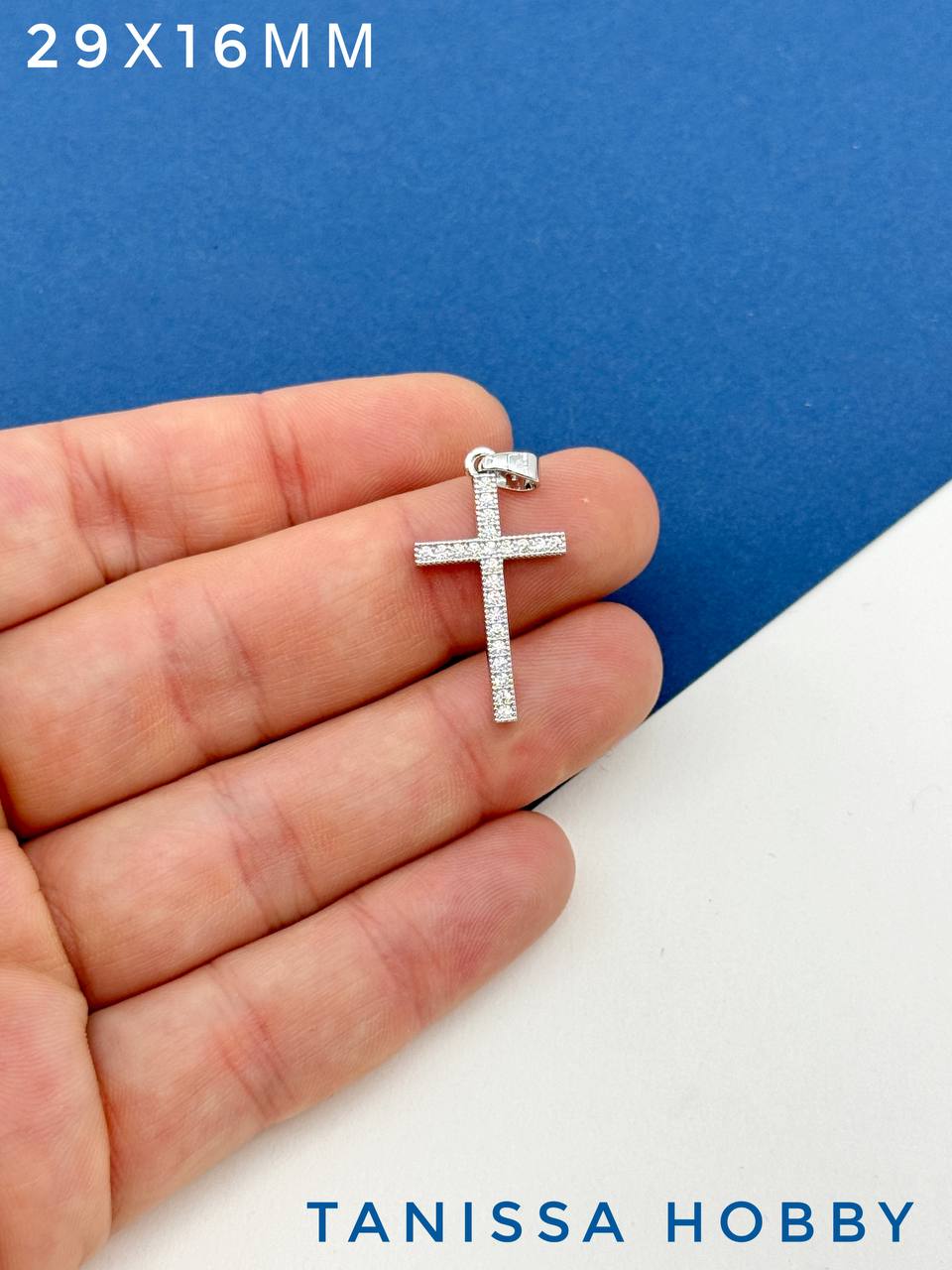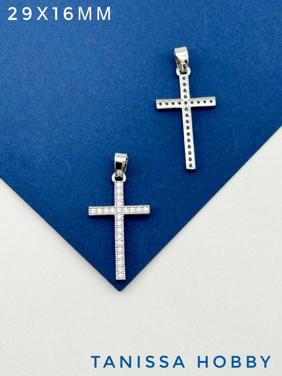 Подвеска крест с фианитами, 29х16мм, родий, Ю216