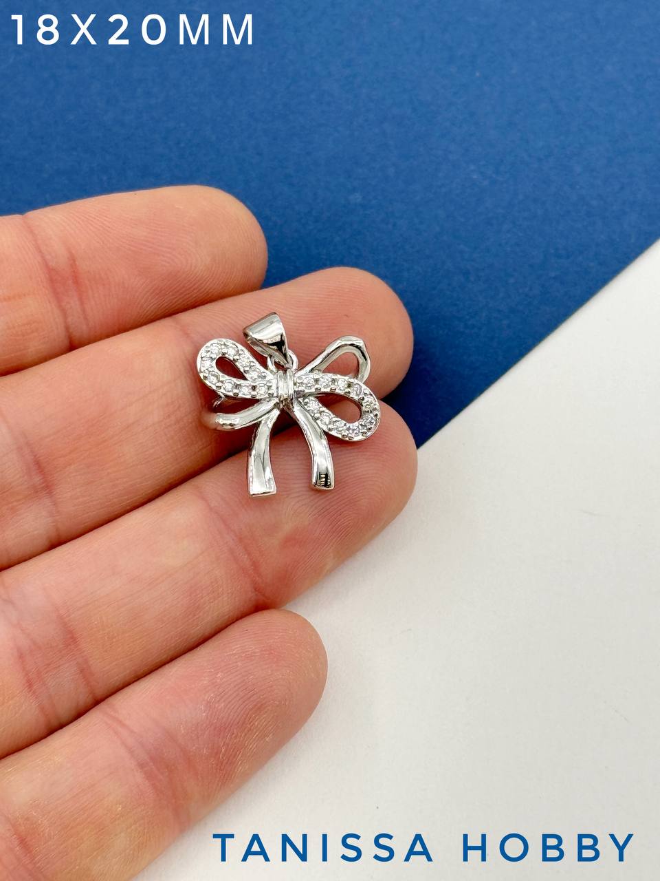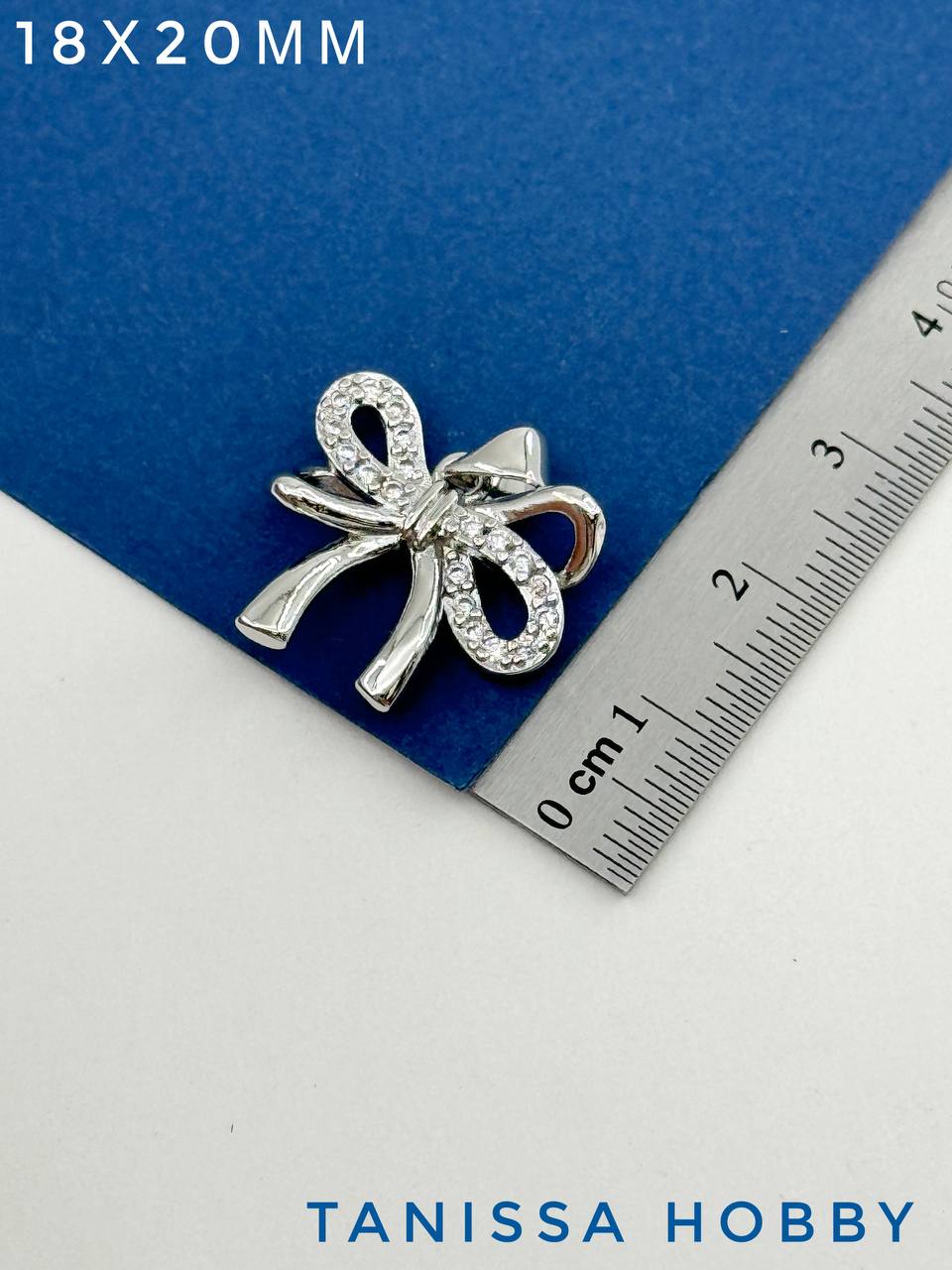 Подвеска "Бантик с фианитами" – элегантная и изысканная деталь для ваших украшений ручной работы. Изготовленная из латуни с родиевым покрытием, подвеска придаст вашим украшениям и аксессуарам роскошный вид. В центре бантика инкрустированы сверкающие фианиты, что добавляет изделиям блеск и изящество. Размер 18х20 мм с учетом ушка делает подвеску удобной для использования в создании кулонов, браслетов, серег и других украшений. Этот элемент отлично подходит для творчества и создания стильных аксессуаров.