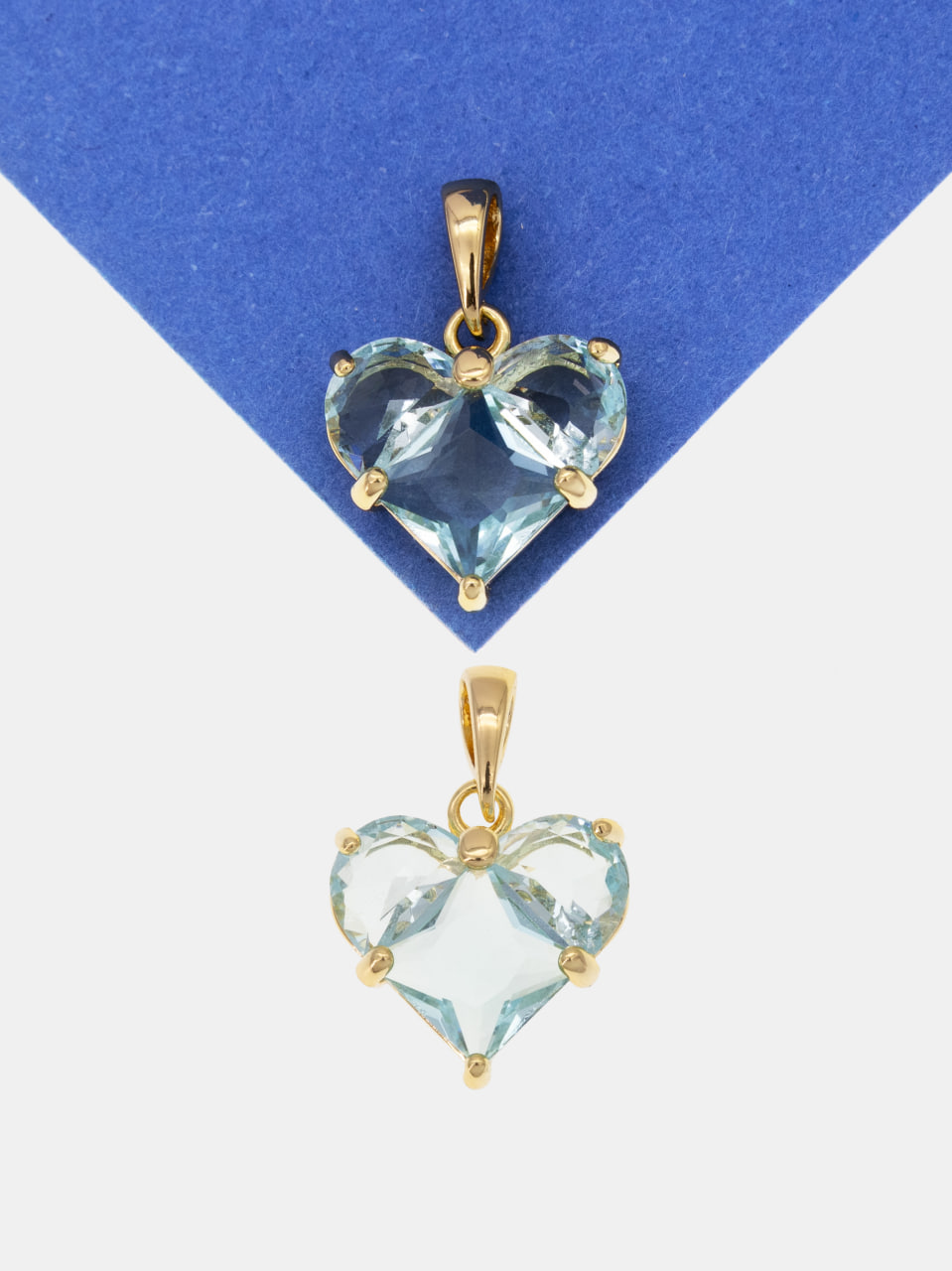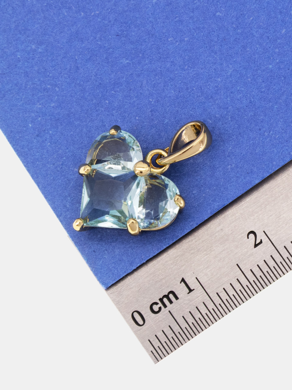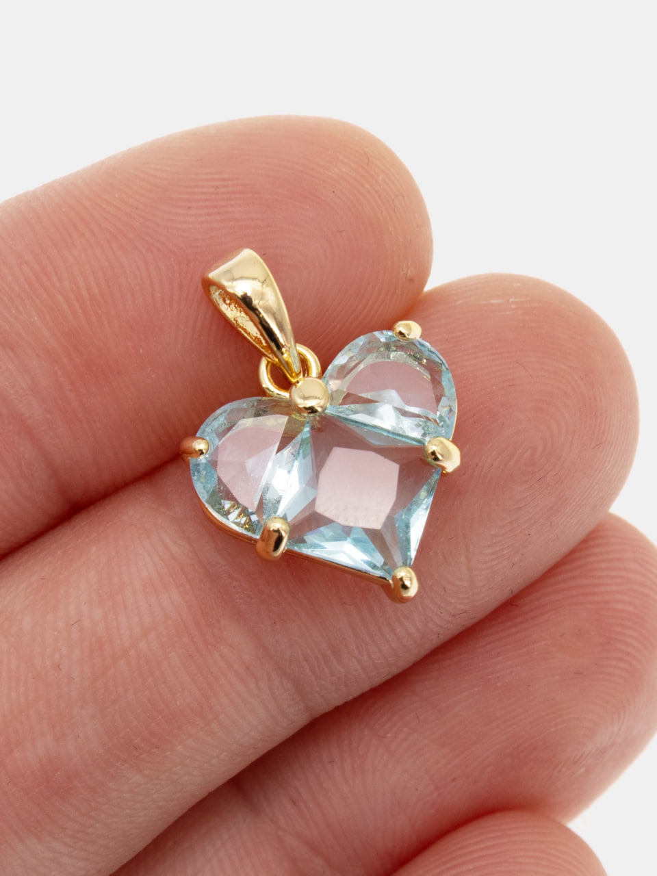 Подвеска сердце фианит голубой 14мм, позолота, Ю312