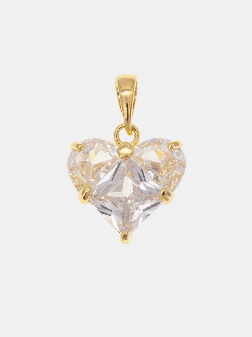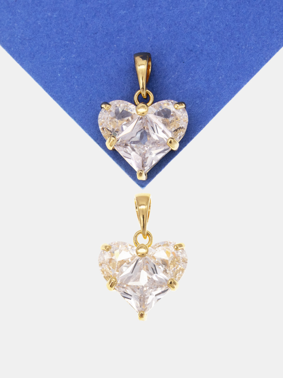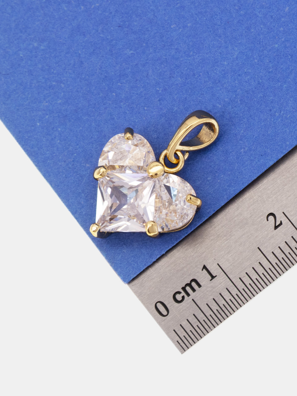 Подвеска сердце фианит прозрачный 14мм, позолота, Ю324