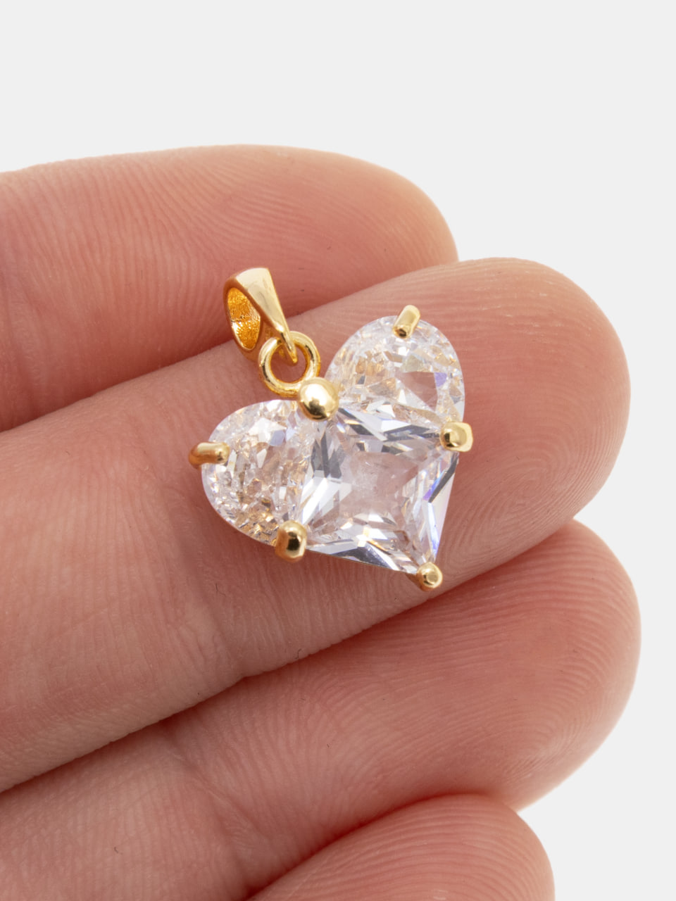 -Подвеска сердце фианит прозрачный 14мм, позолота, Ю324