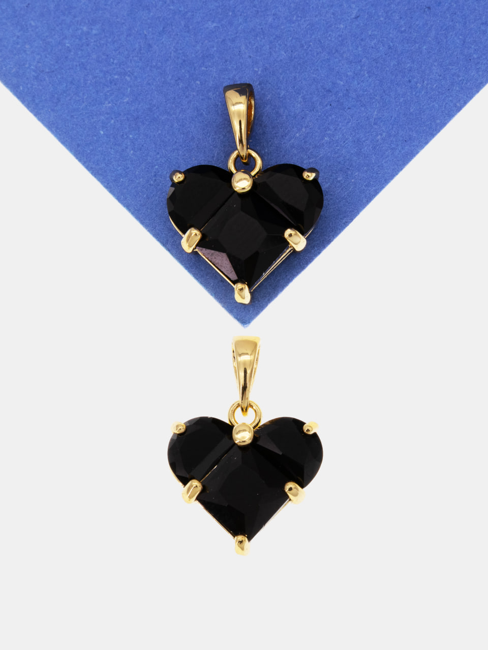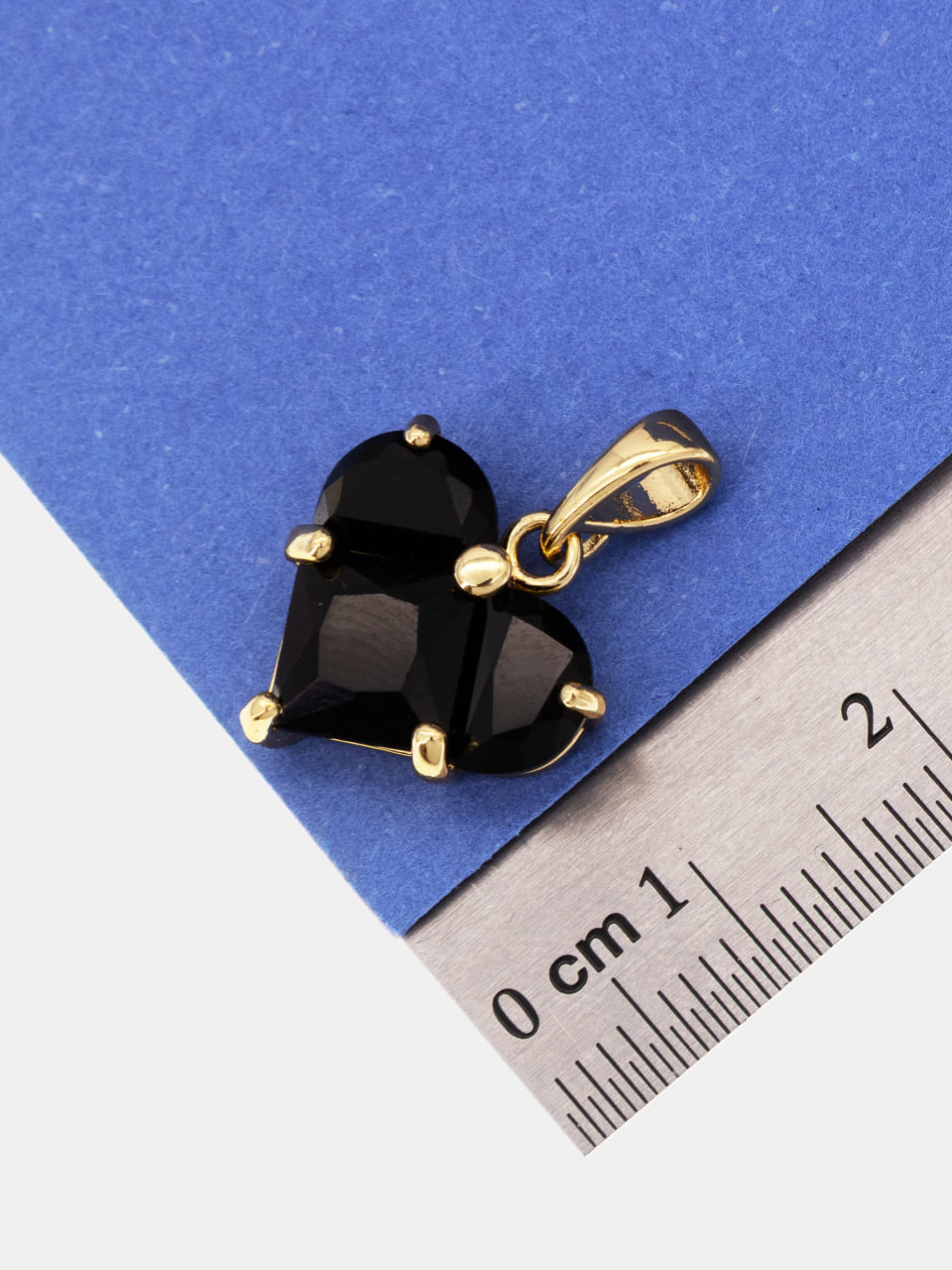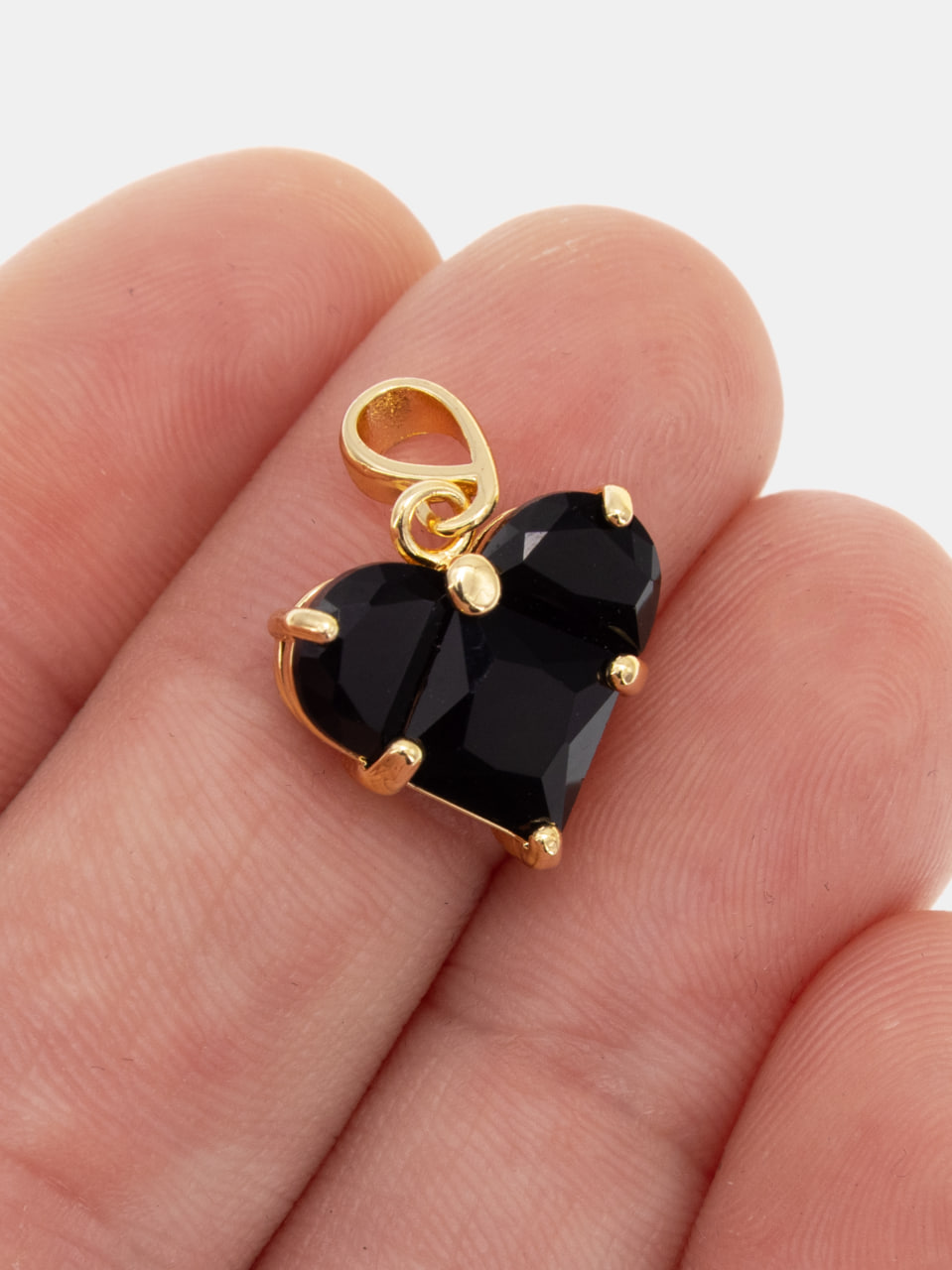 Подвеска сердце фианит черный 14мм, позолота, Ю321