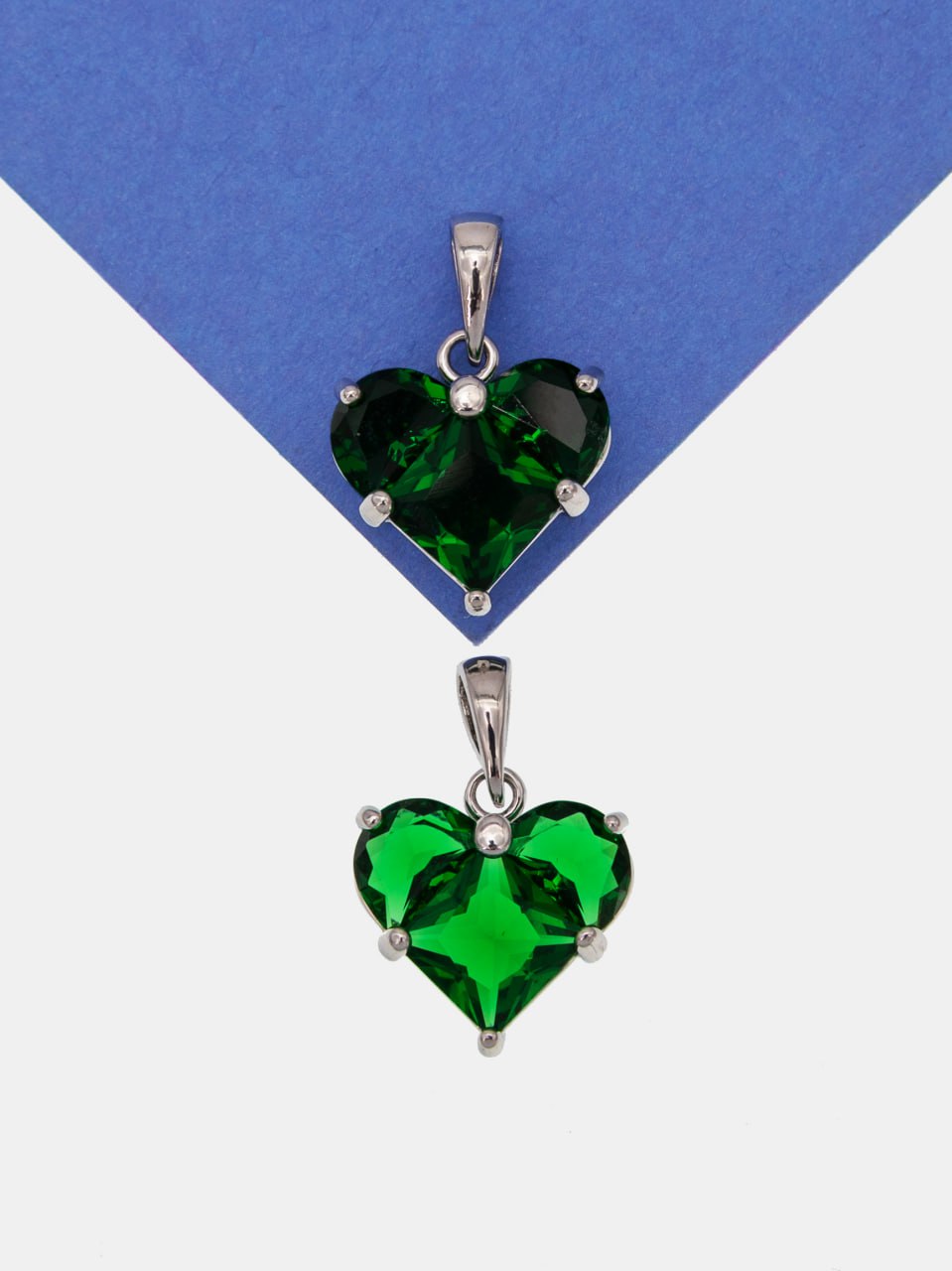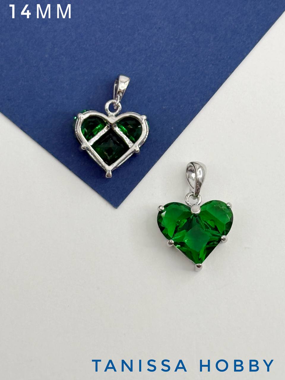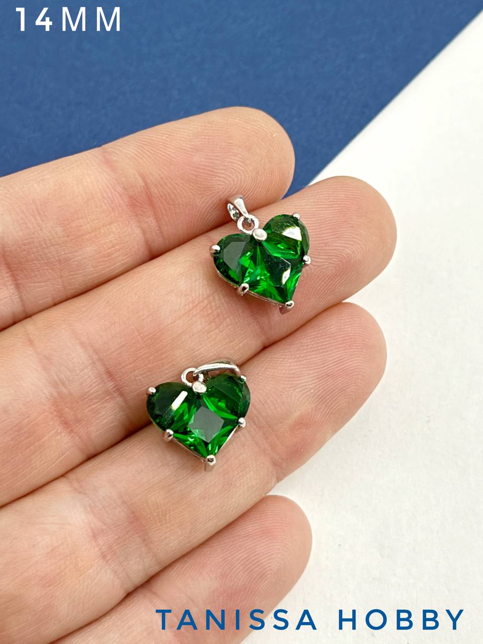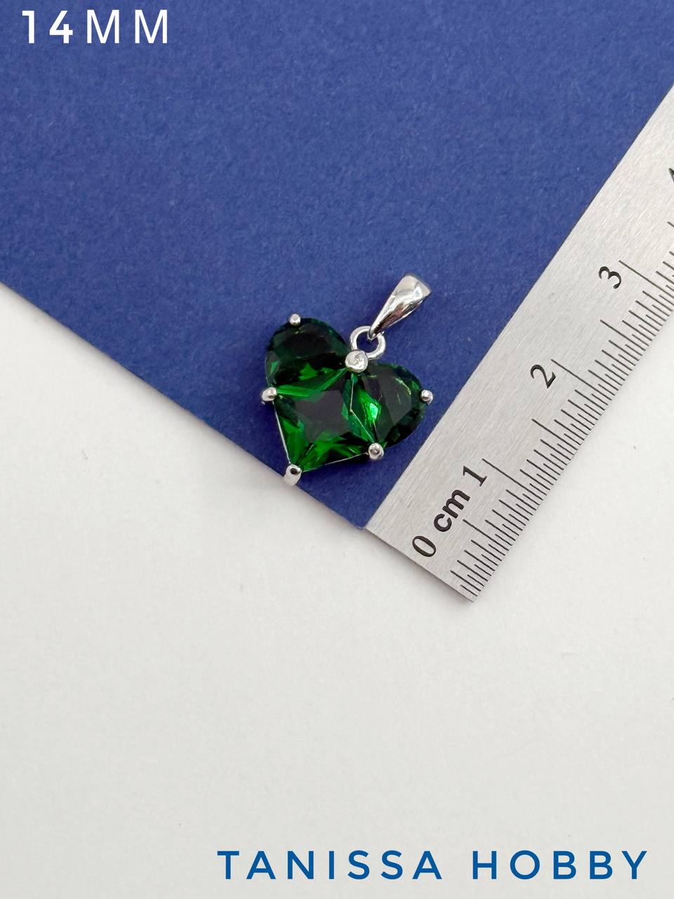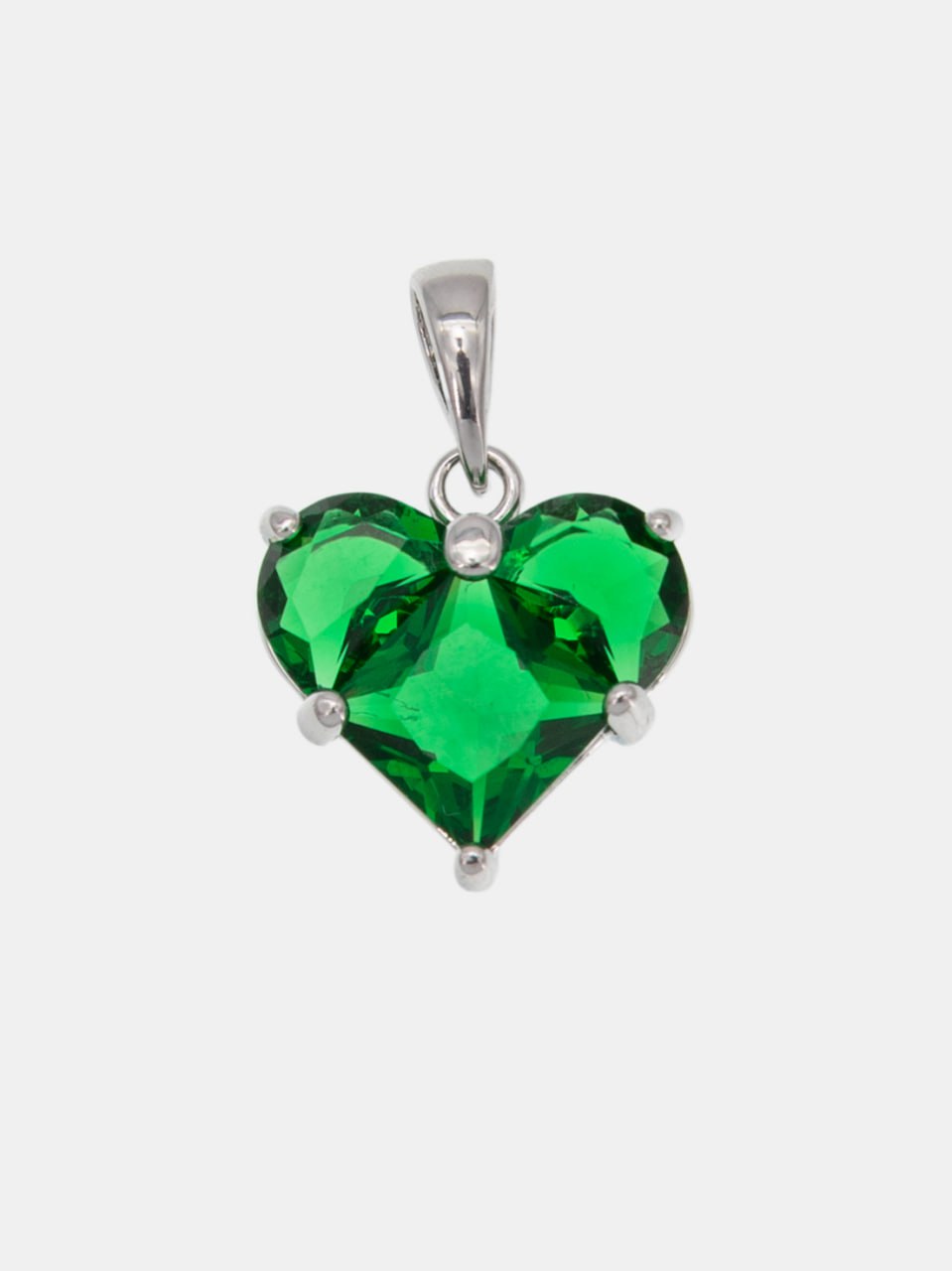 Подвеска сердце фианит зеленый 14мм, родий, Ю314