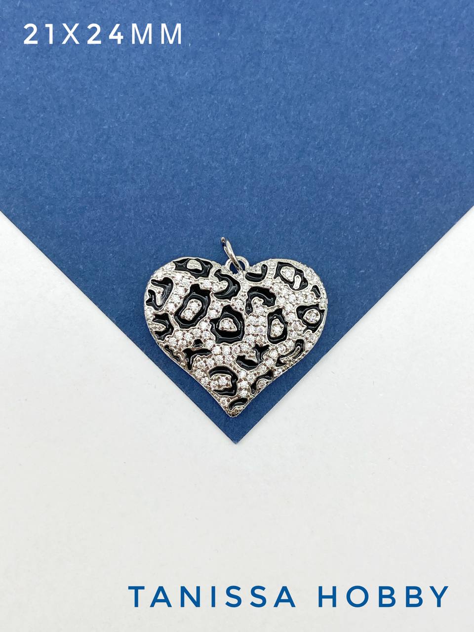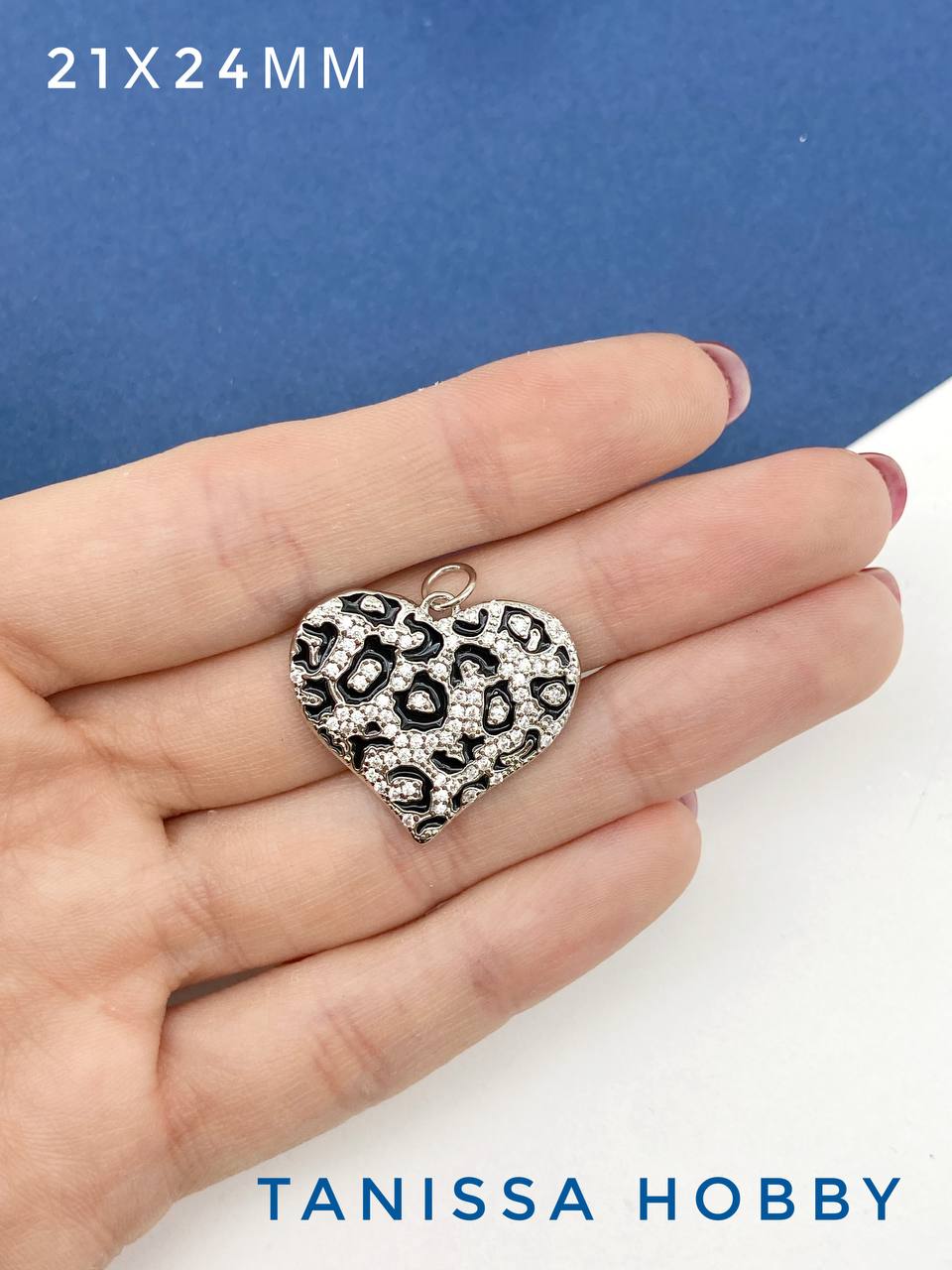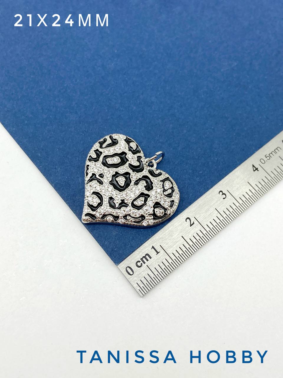 Подвеска сердце плоское леопардовое с эмалью и фианитами