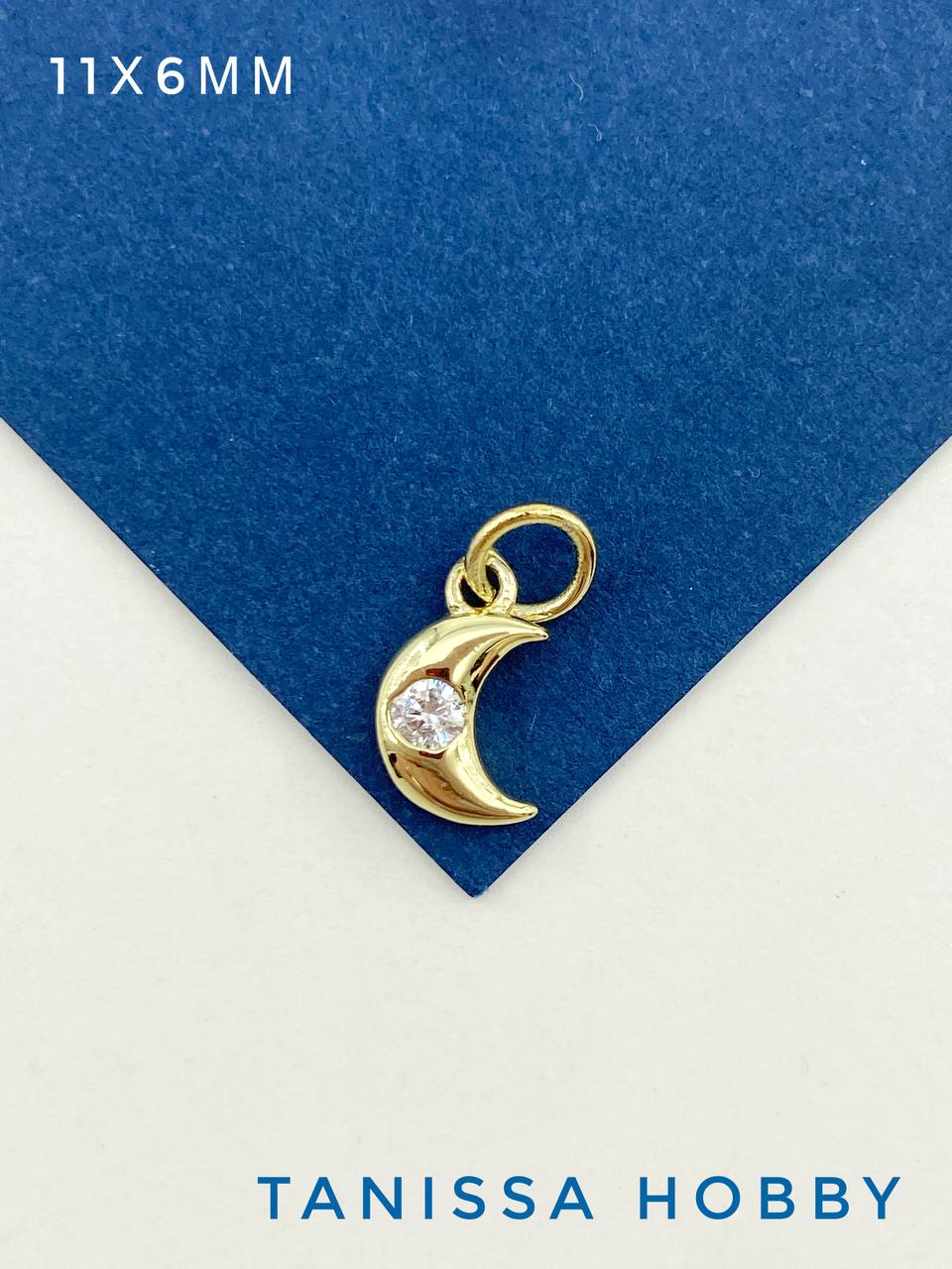 Подвеска луна месяц с фианитом, 11х6мм, Категория В, позолота, Ю523